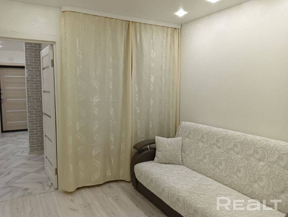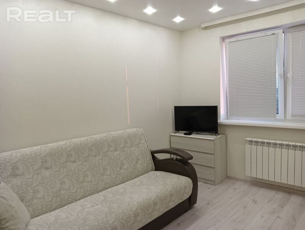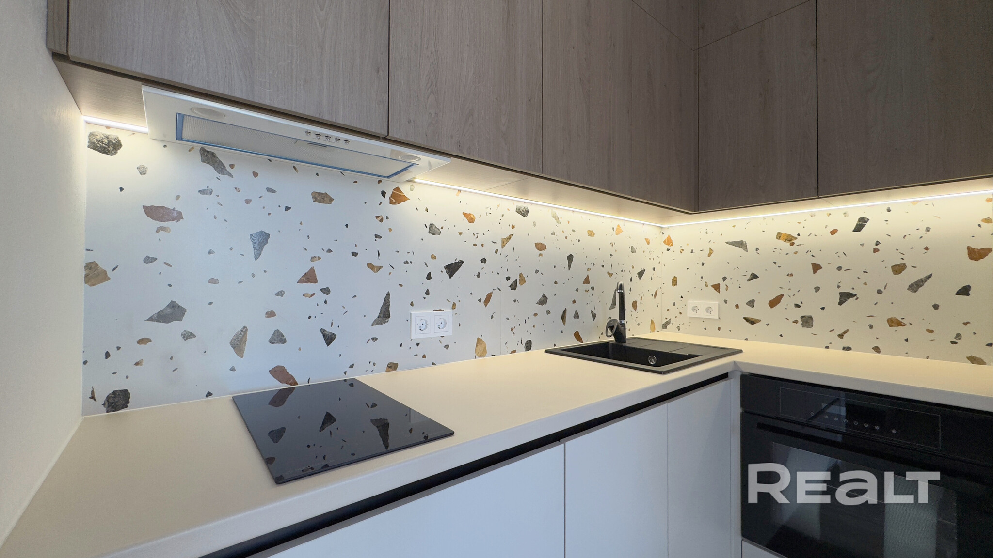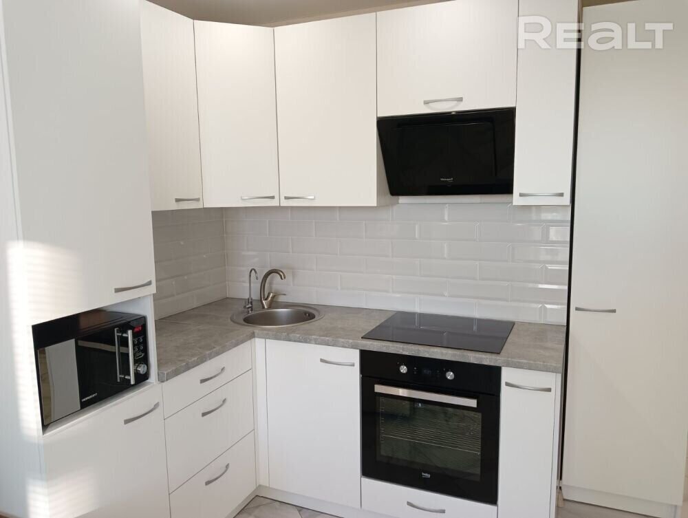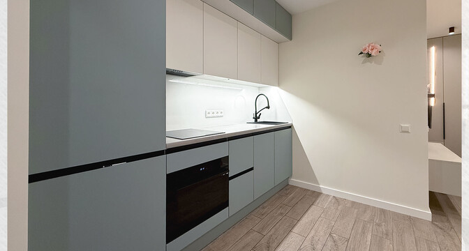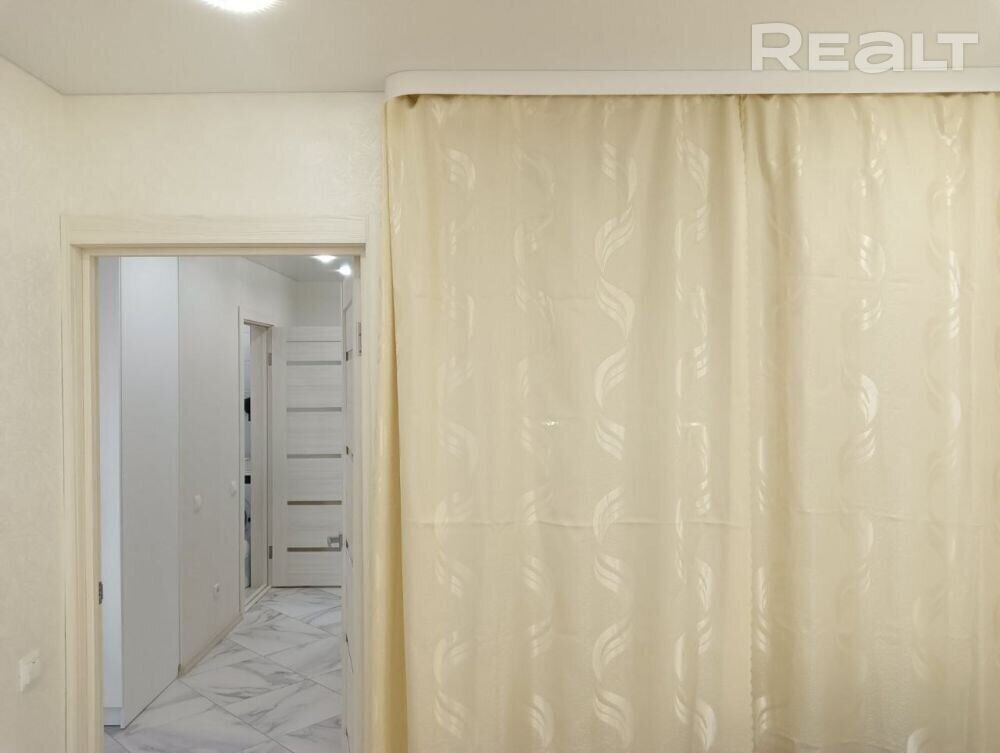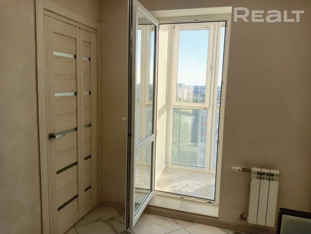 Последняя квартира в подборке находится в ЖК «Минск-Мир» в 25-этажном доме на Игоря Лученка, 8. Дом сдали в эксплуатацию в 2023 году. Студия располагается на 17-м и занимает 25,1 м². Около дома есть кафе и продуктовый магазин. За 10 минут на общественном транспорте можно добраться до центра города. В пешей доступности — станция метро «Аэродромная».