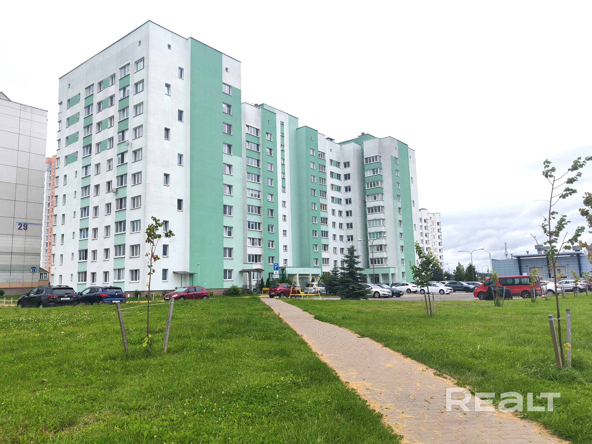 Продается квартира в микрорайоне Новая Боровая. Она находится на первом этаже семиэтажного дома 2018 года постройки. Ее площадь — 26,4 м². Около дома располагаются остановки общественного транспорта, а напротив — костел. До станции метро «Уручье» можно доехать за 10 минут. В районе есть поликлиника, магазины, кафе и детские учреждения образования.