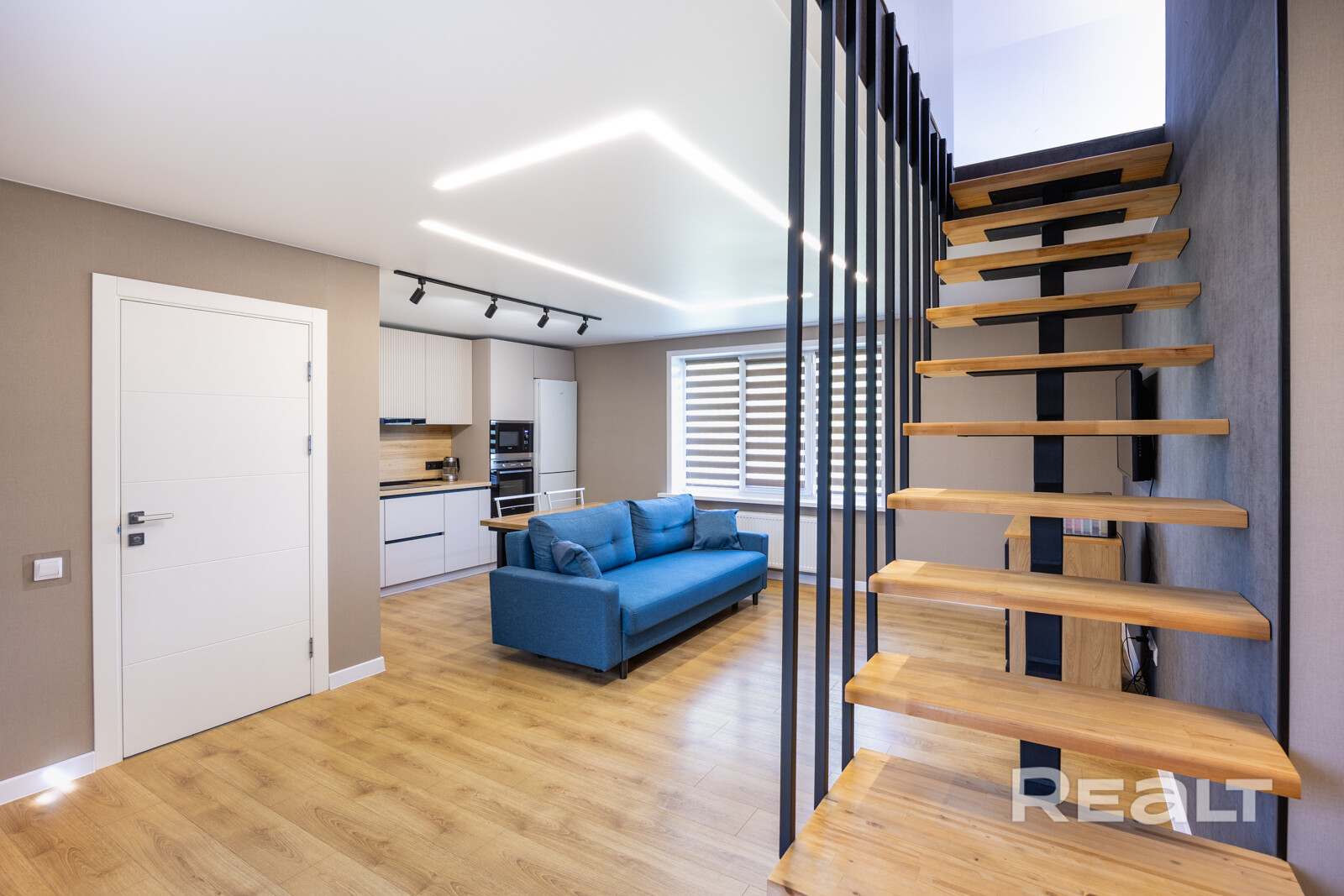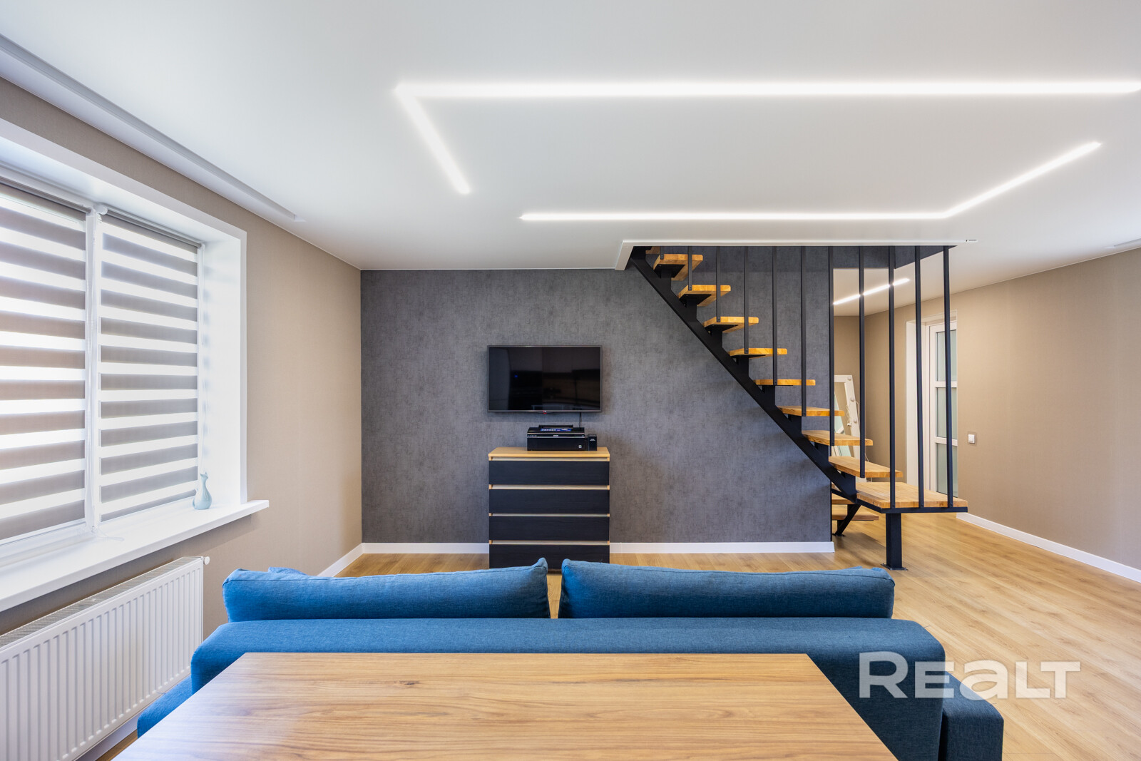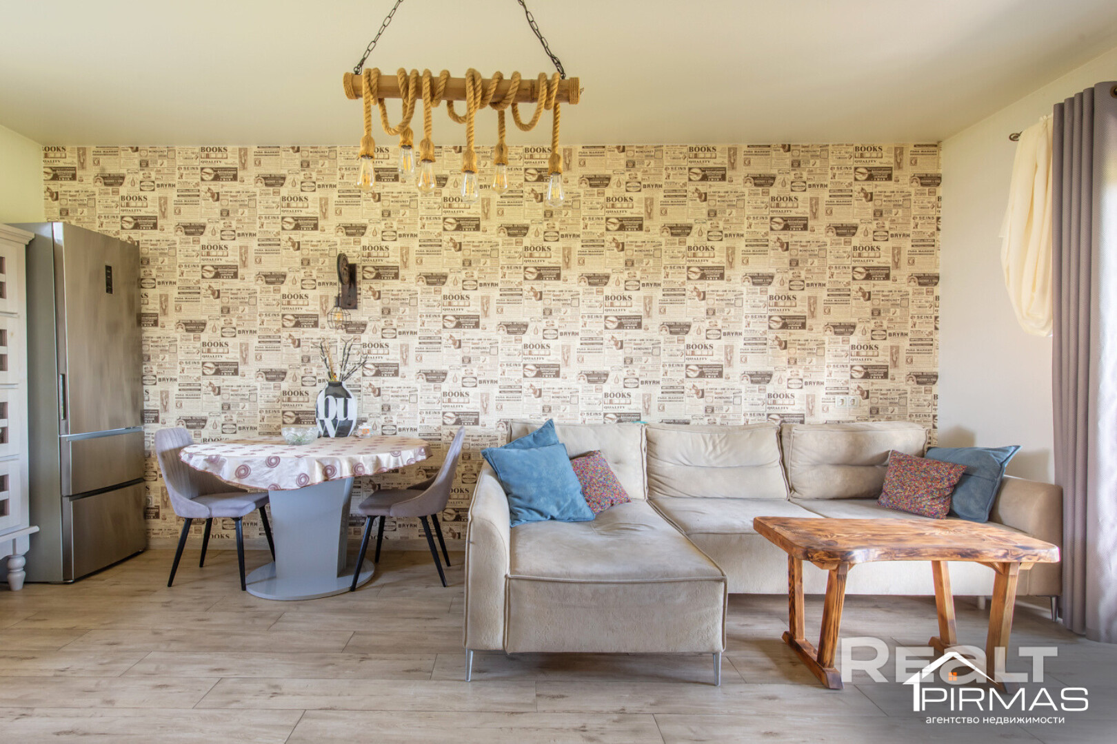 Внутри стильный интерьер, добротная мебель и бытовая техника. Дом почти готов к проживанию: можно обновить фасад и завершить отделку прихожей.