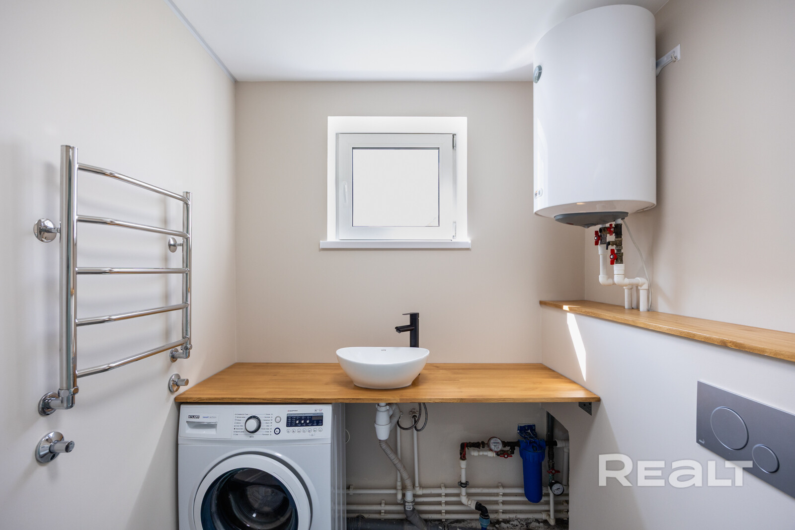 Дом оборудован современной техникой и мебелью. Отопление и подогрев воды — электрические. Газ проходит по улице, есть возможность подключения.