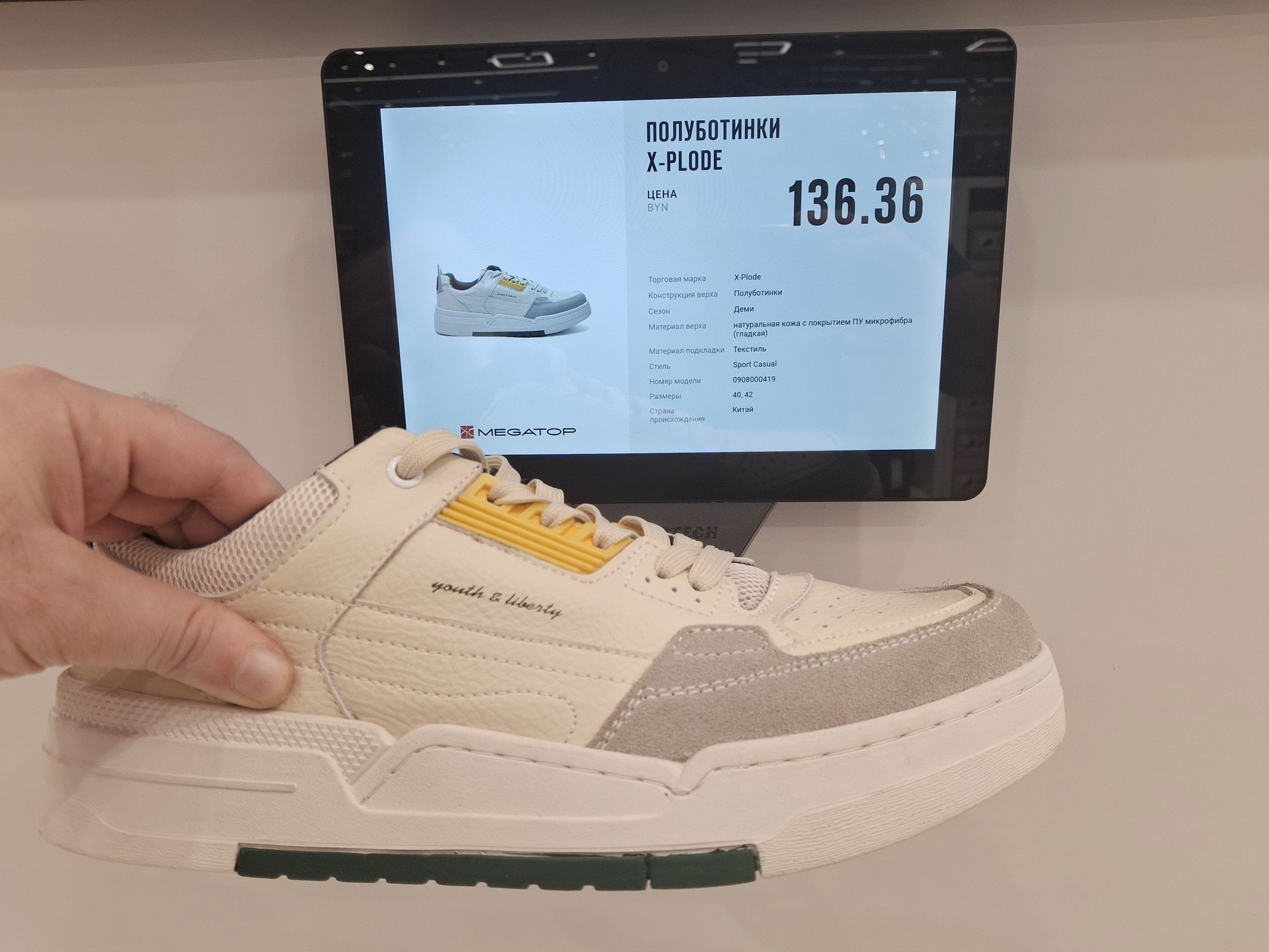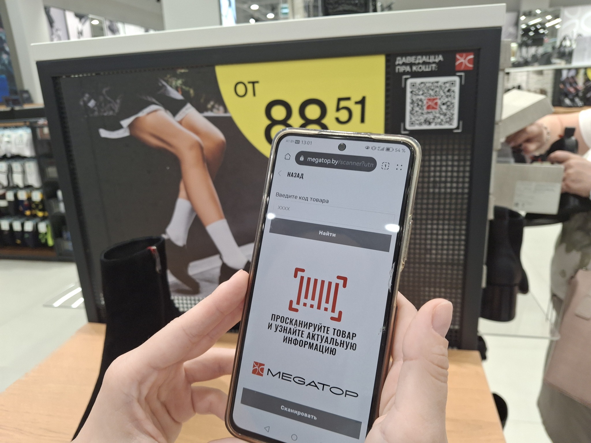 Из ключевых отличий — полное отсутствие ценников. Стоимость обуви можно узнать одним из двух способов: первый — поднести штрихкод на бирке или коробке к прайс-чекеру, второй — считать код со смартфона.