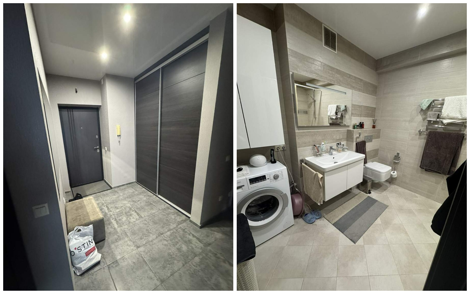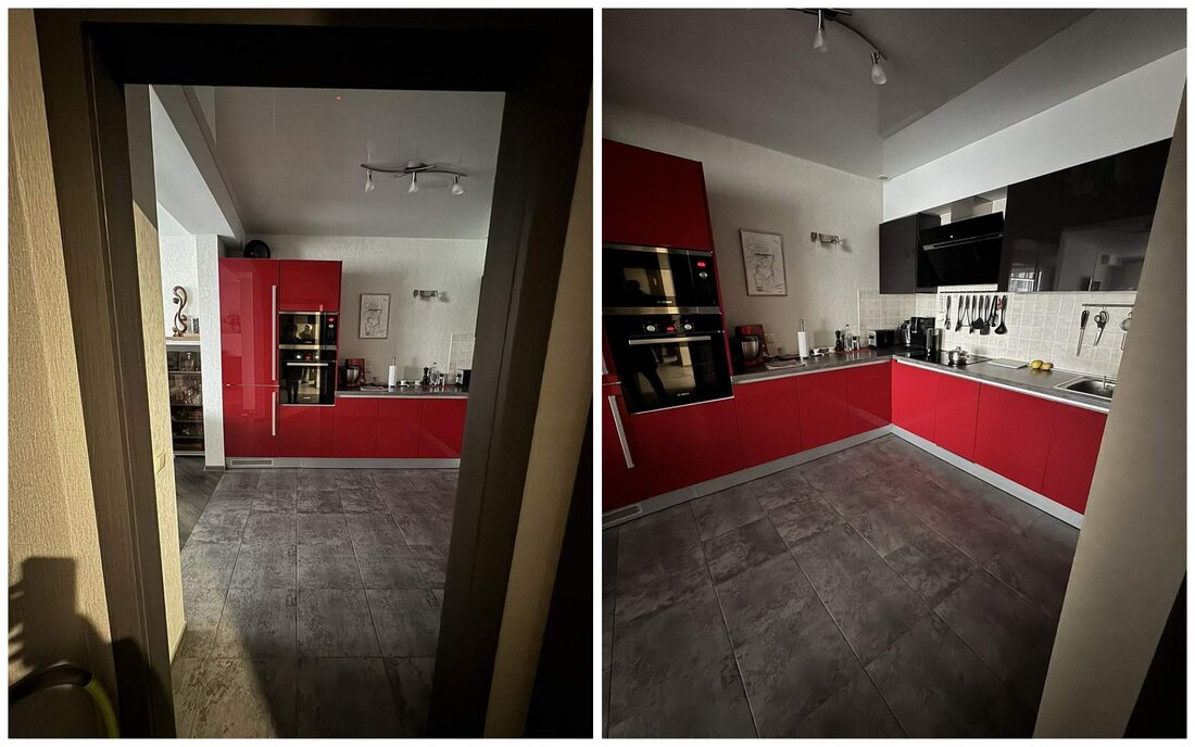 Дом состоит из 15 этажей. Выставленная на торги квартира находится в первом подъезде. Судя по представленным фотографиям, жилье состоит и кухни, просторной гостиной и спальни.
