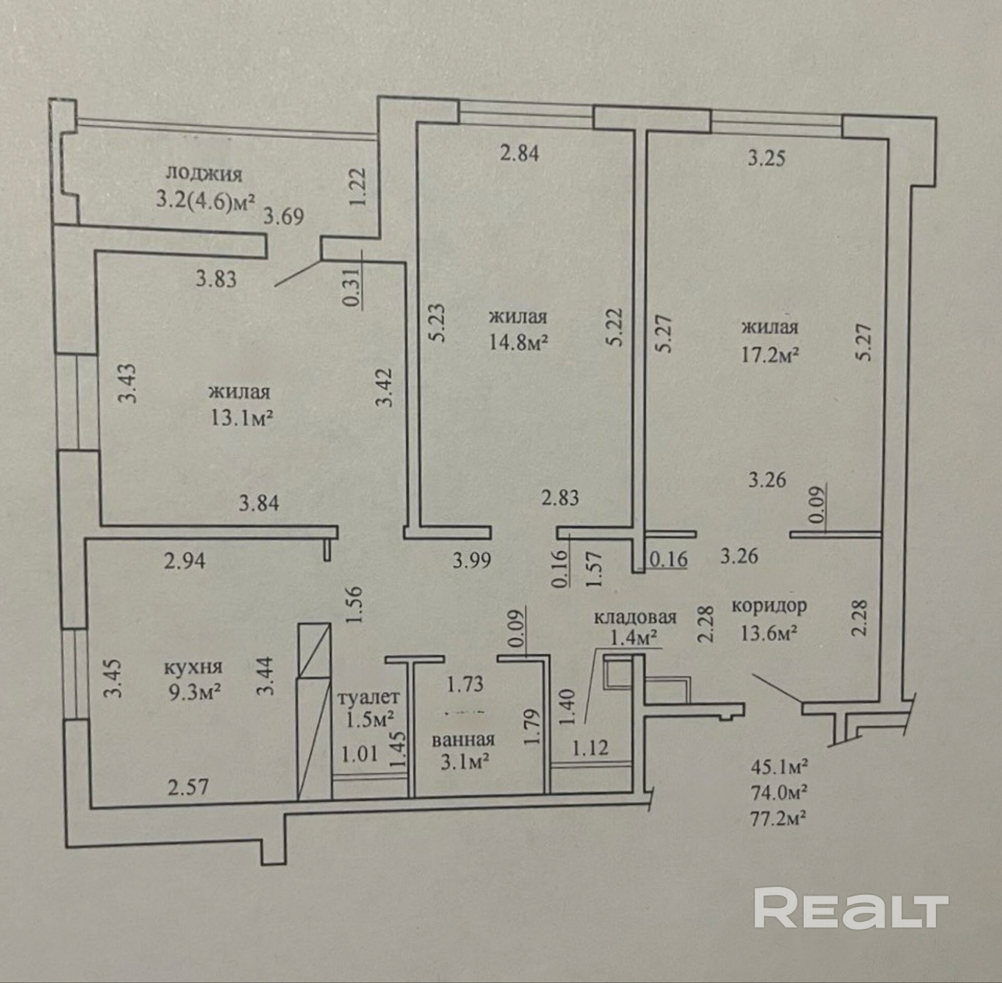 Второе предложение — трехкомнатная квартира на улице Карвата, 3. Дом — аналогичная панелька на 19 этажей и 133 квартиры. Трехкомнатная квартира находится на 18-м этаже. Ее общая площадь составляет 77 квадратных метров. Жилье состоит из кухни и трех отдельных комнат, одна из которых с лоджией. Санузел в квартире — раздельный.