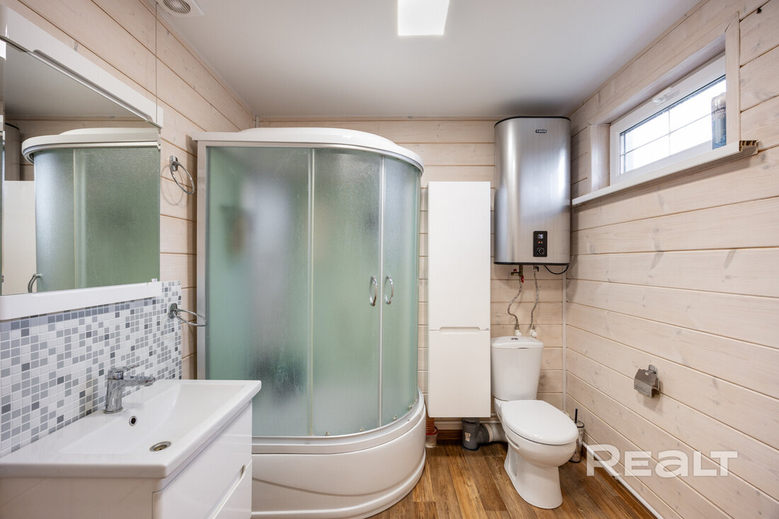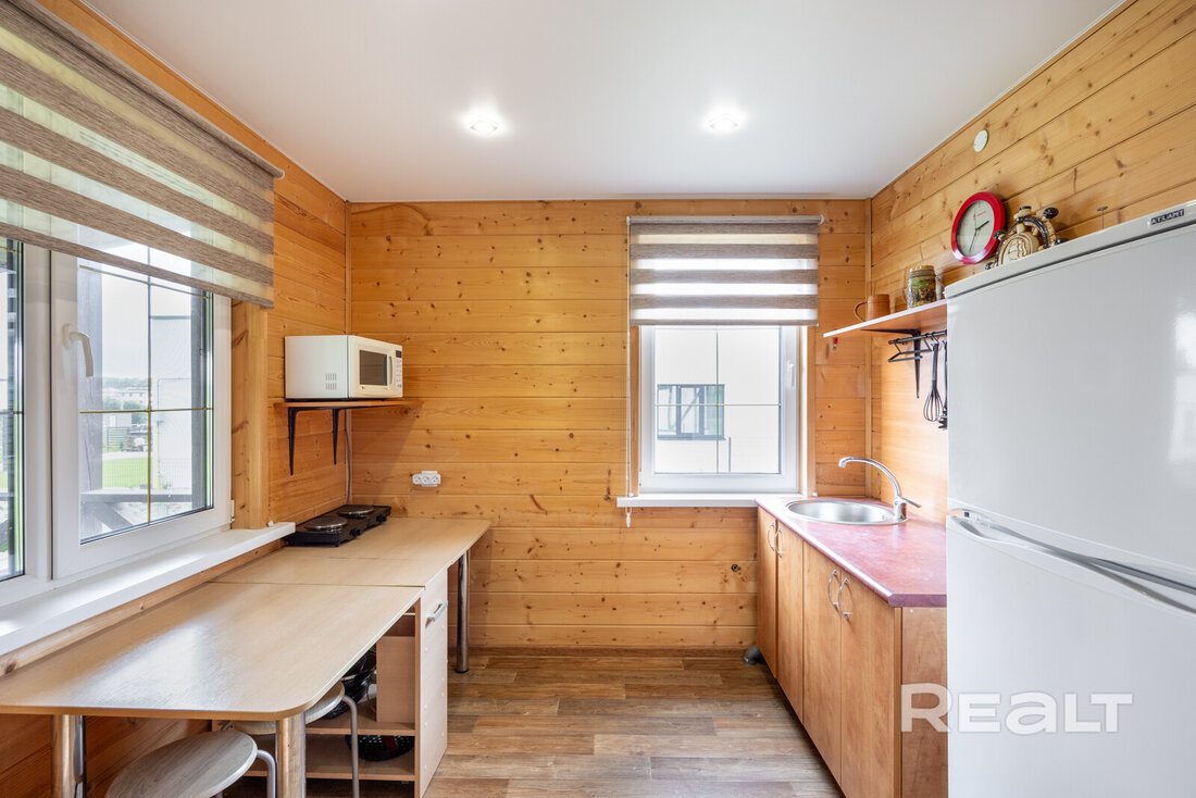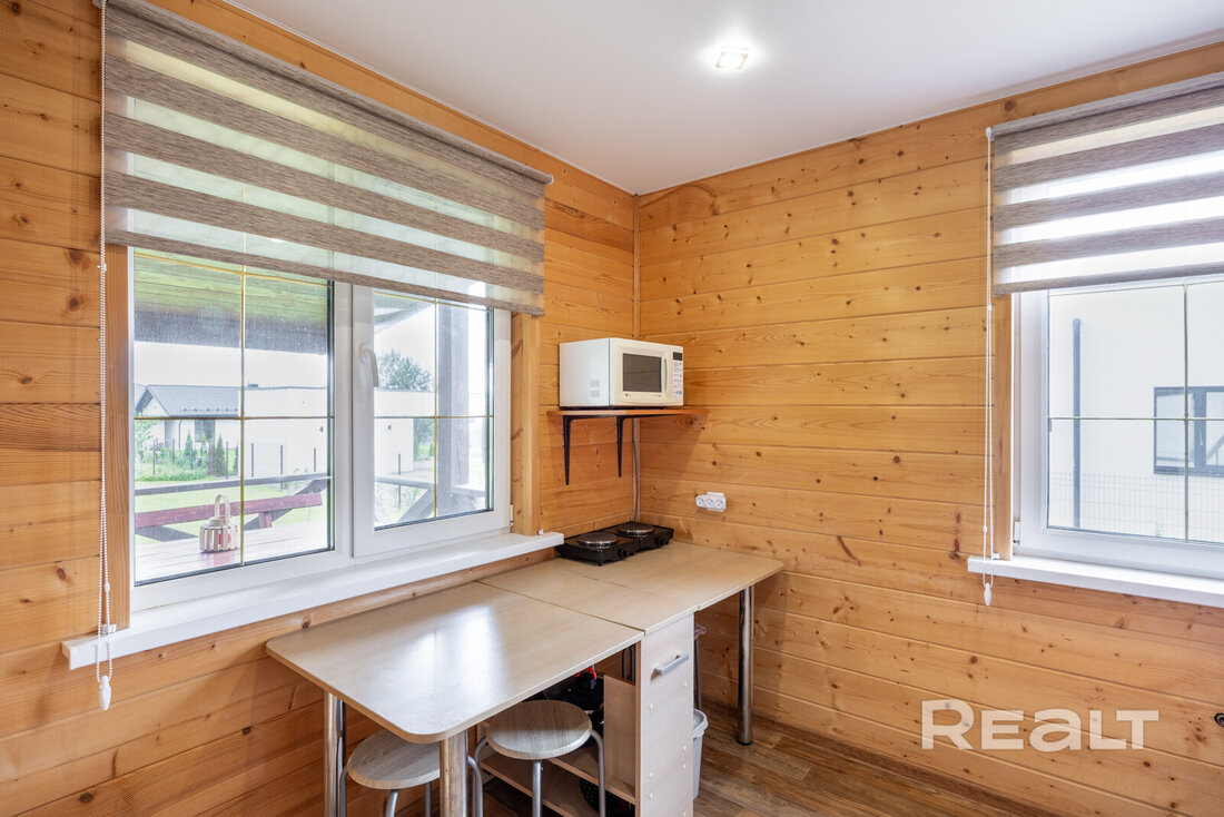 Снаружи и внутри обшит деревом, окна — ПВХ (KBE). Электропроводка разведена грамотно, с автоматами на каждую группу.