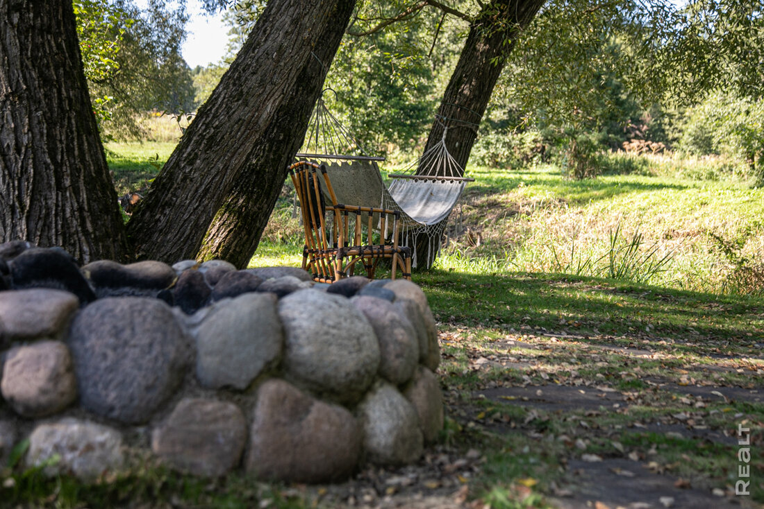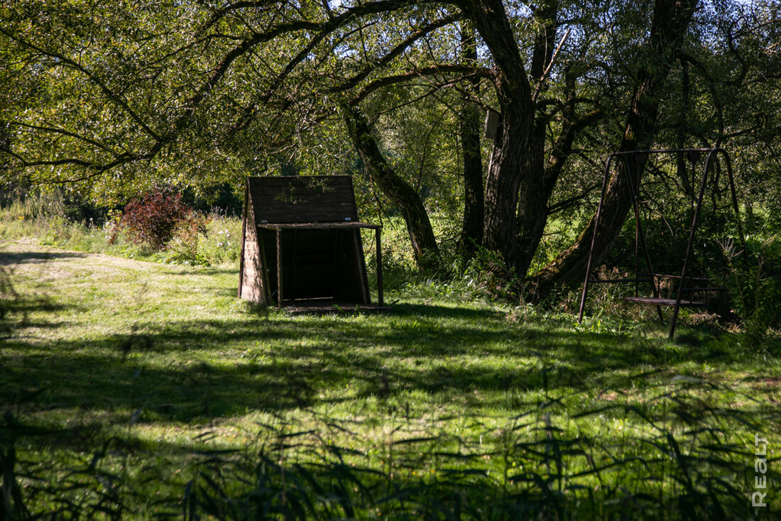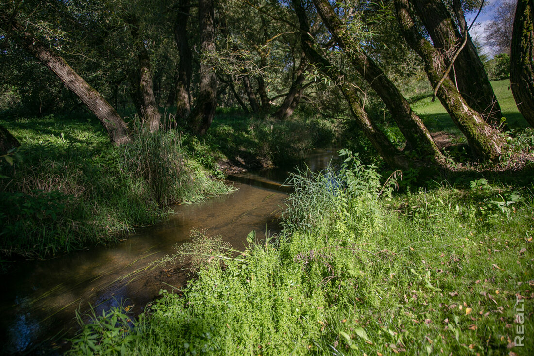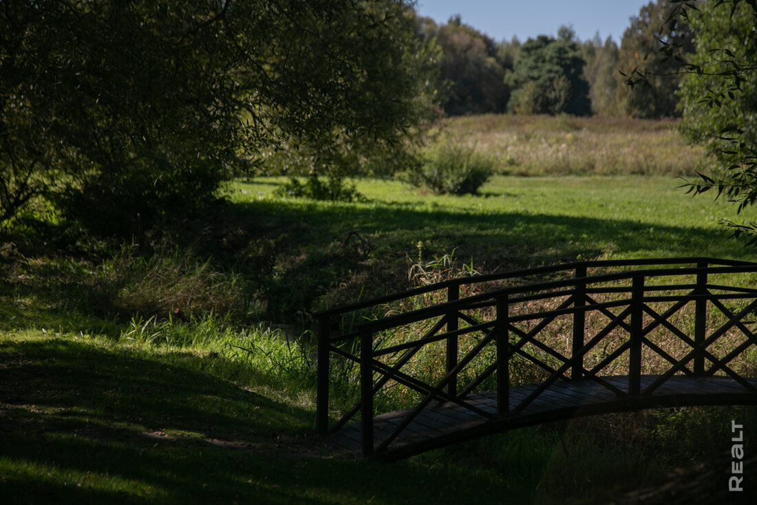 Вы удивитесь, но рядом с участком есть и целый остров! Это луг между речкой Лагозянкой и руслом старого проточного прудика. Через Лагозянку владелец перекинул мост — чтобы можно было прогуливаться до берега более широкой Гайны. Пройдя немного влево, можно увидеть слияние двух речек.