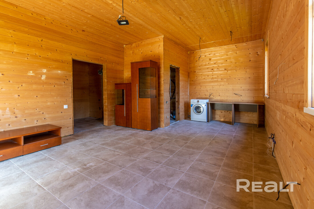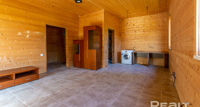Также на первом уровне есть помещение с бойлером, которое можно оборудовать под постирочную. Выделен и санузел, уже приобретена сантехника. Полы на первом этаже облицованы плиткой (есть электрический теплый пол).