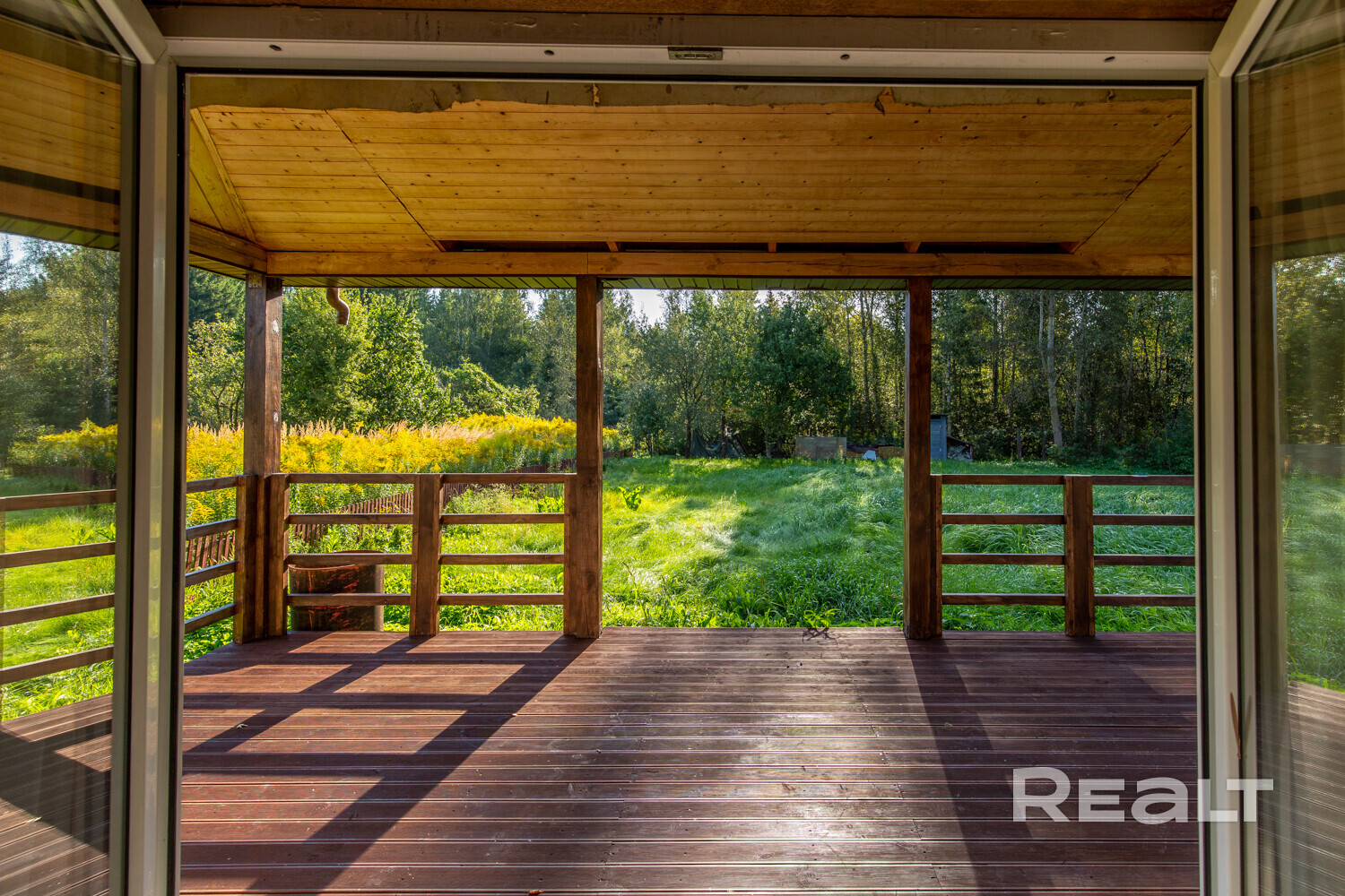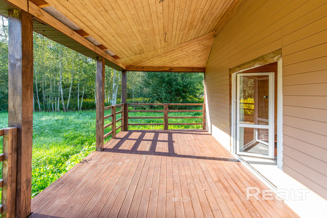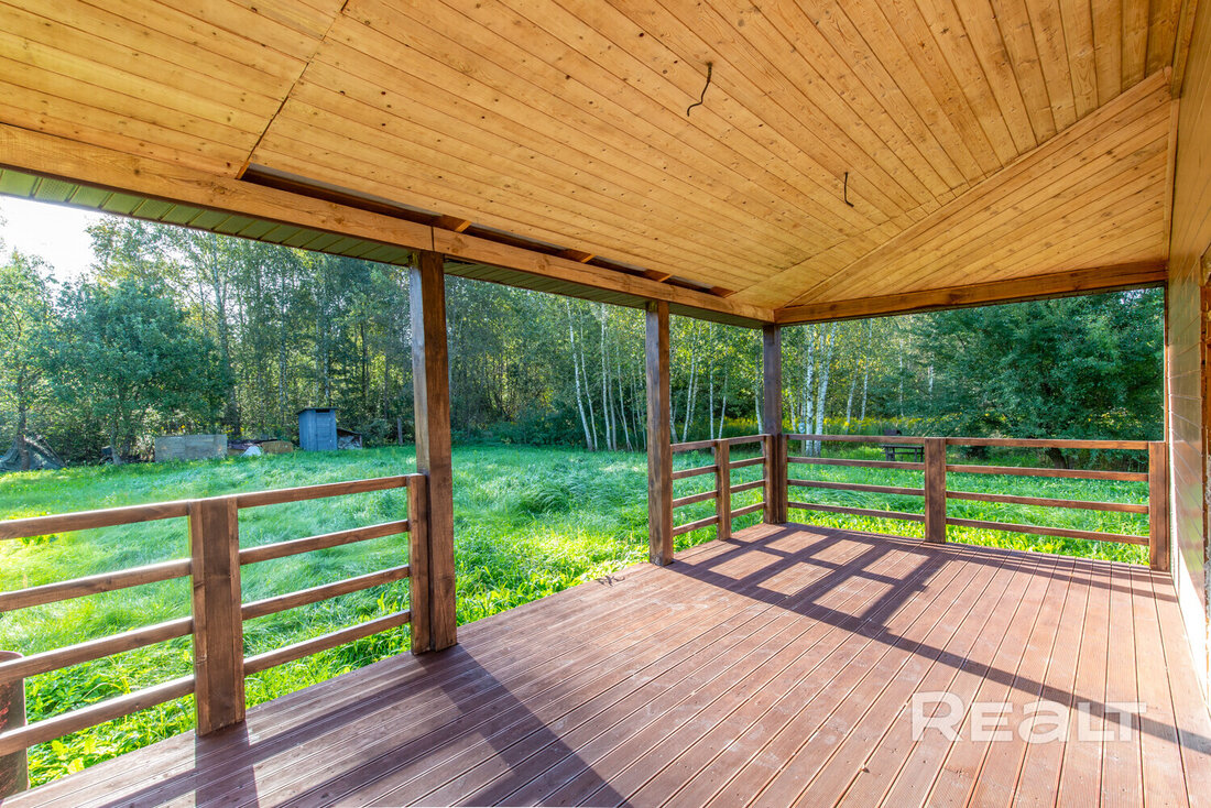 Сама крытая терраса смотрит на лес, который находится за калиткой.