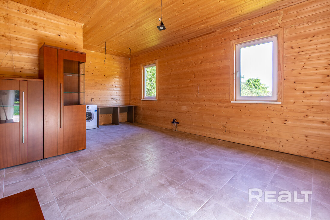 Участок занимает 8 соток. Он требует вмешательства: нужно оборудовать дорожки, зоны отдыха по желанию. Пути заасфальтированы, в 10 минутах езды располагается озеро с пляжем. Рядом — несколько продуктовых магазинов. До Минска всего 40 км.