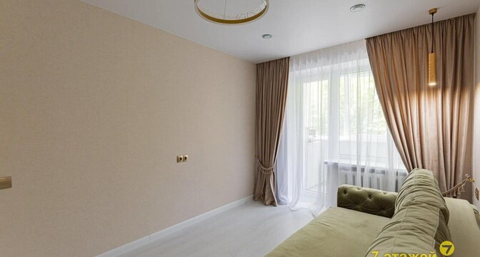 Квартира с хорошим ремонтом. Комнаты изолированные и выходят на разные стороны. Из гостиной есть выход на застекленный балкон. Жилье обставлено мебелью и техникой.