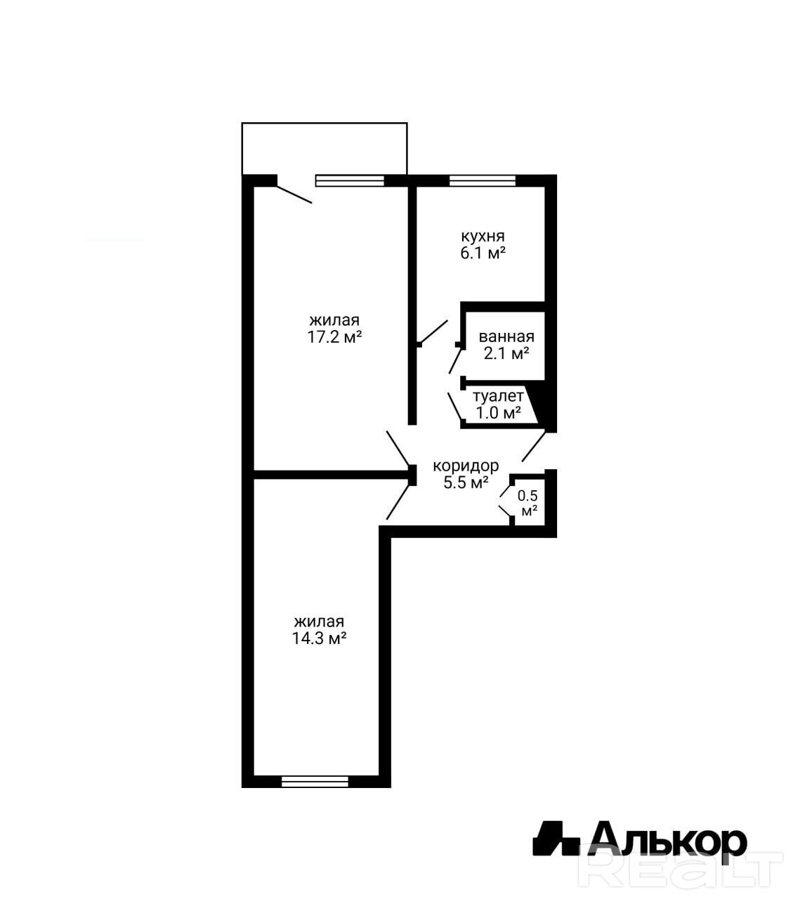 Эта двушка также находится на последнем этаже пятиэтажки 1967 года постройки на Седых, 16. Она занимает 46,7 м². 6,1 м² отведено на кухню. В 2022 тут провели капремонт.
