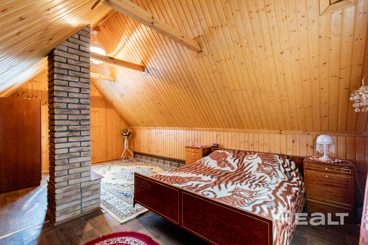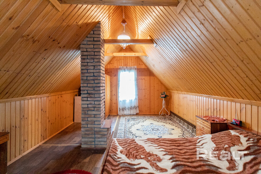 Мансардный этаж, куда ведет наружная лестница, включает в себя одно большое пространство, в котором организована еще одна спальня.