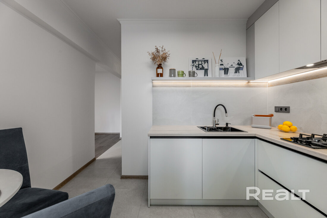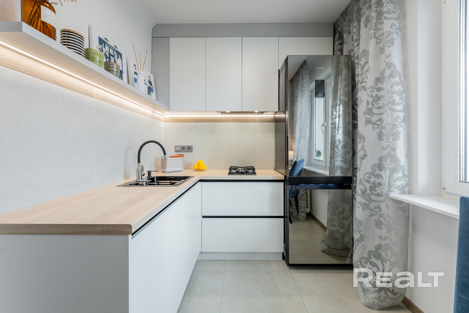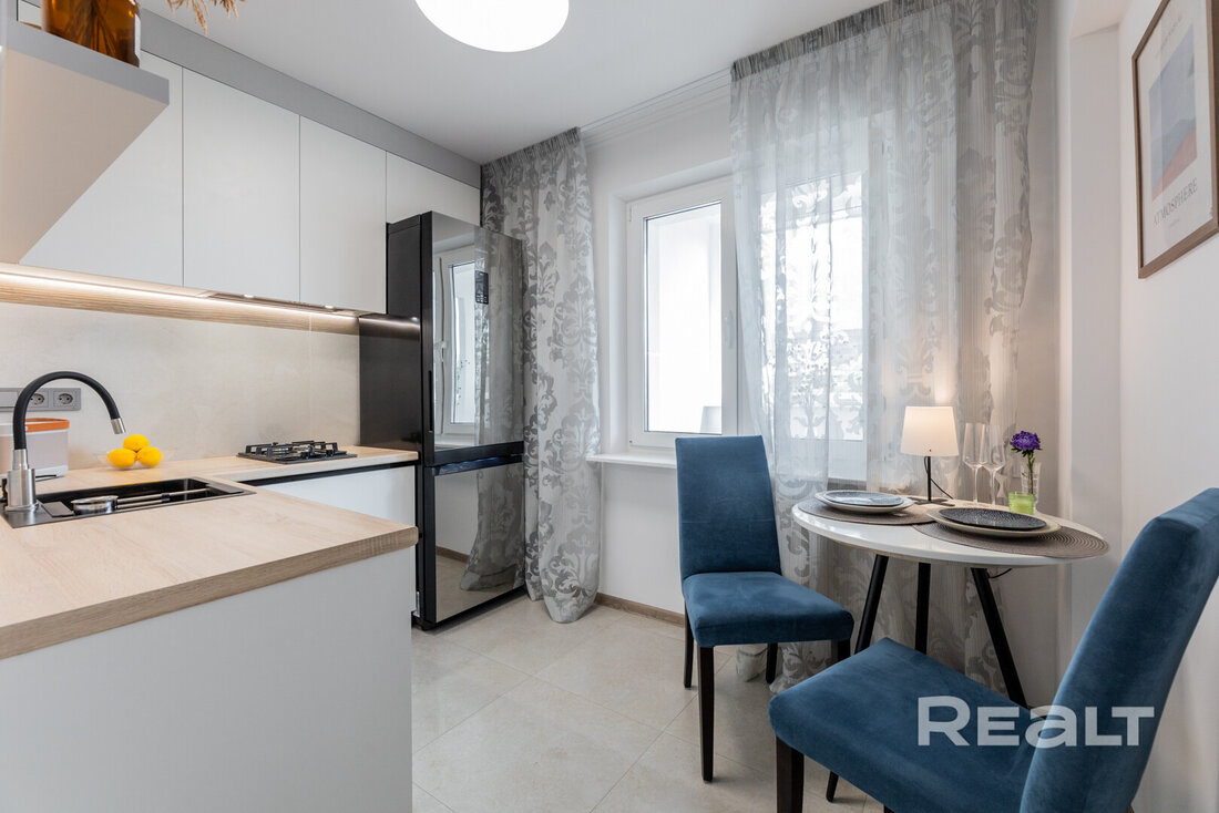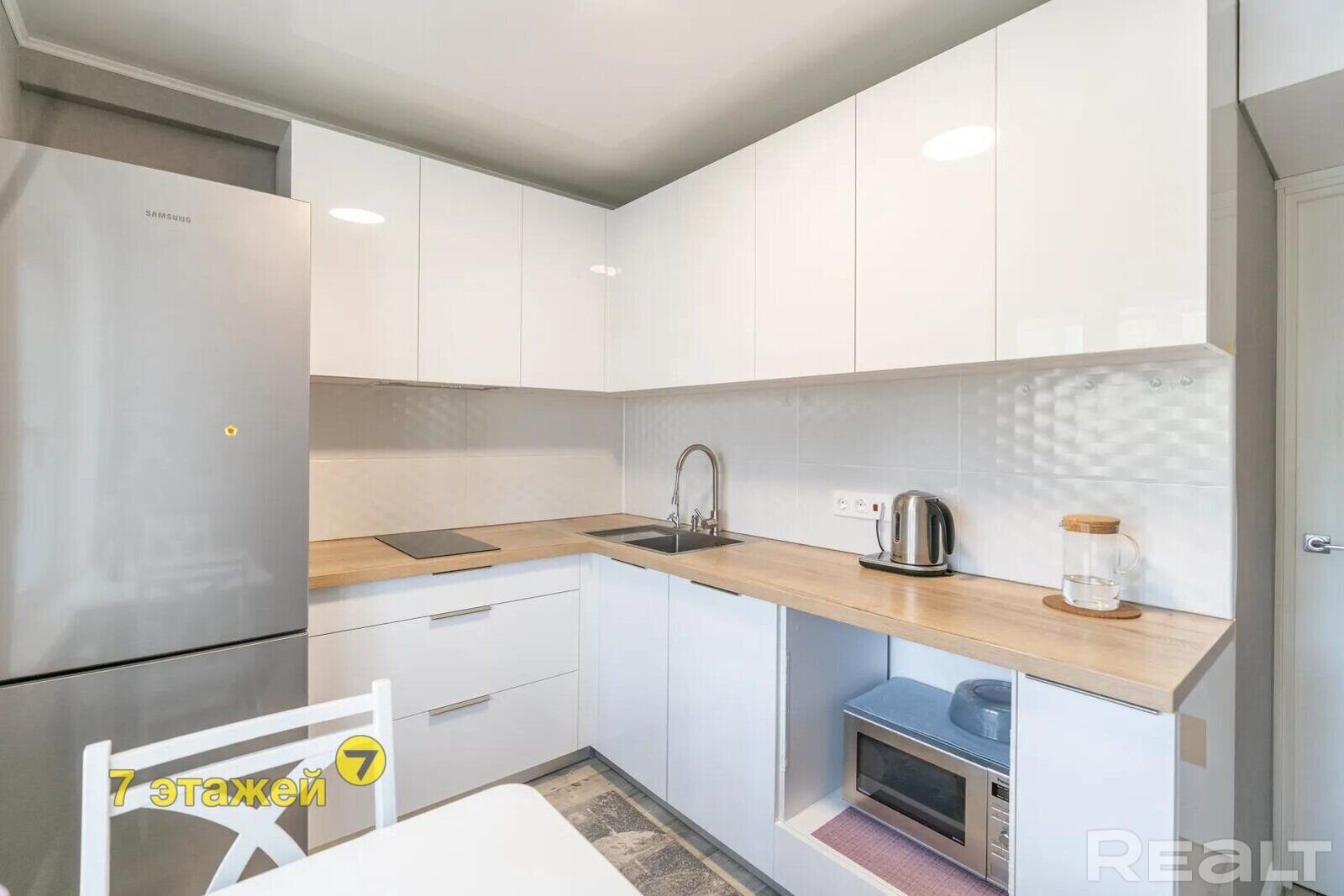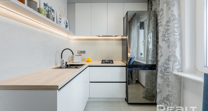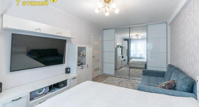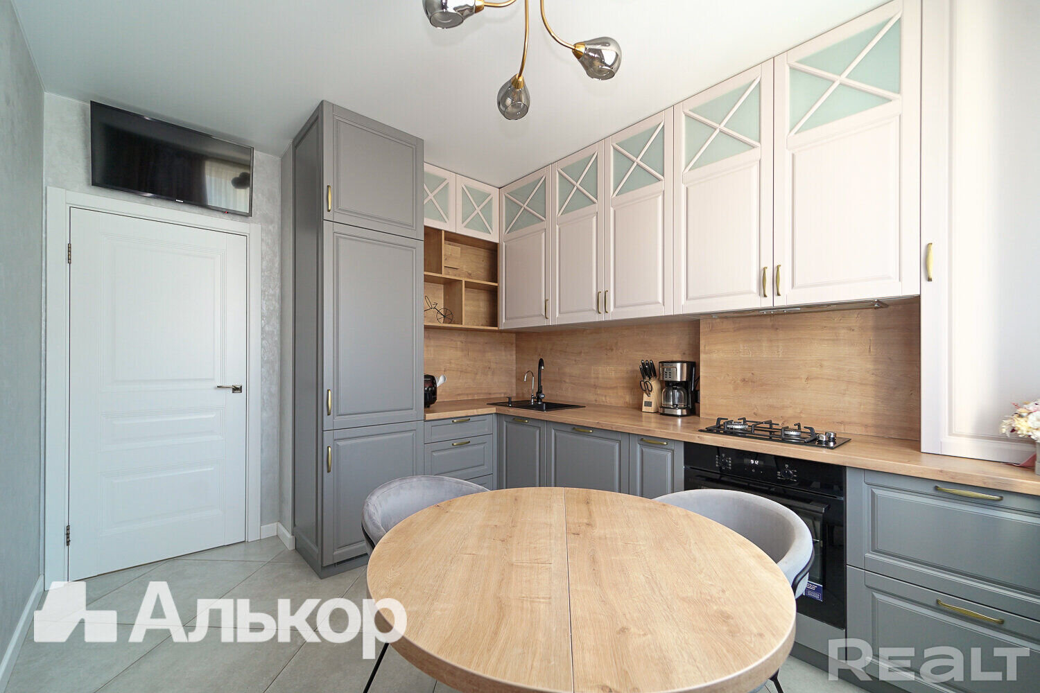 Еще одну ухоженную квартиру можно купить в семиэтажке 2017 года постройки на Игуменском тракте, 14. Она располагается на третьем этаже и занимает 45,7 м². Площадь кухни — 9,9 м².