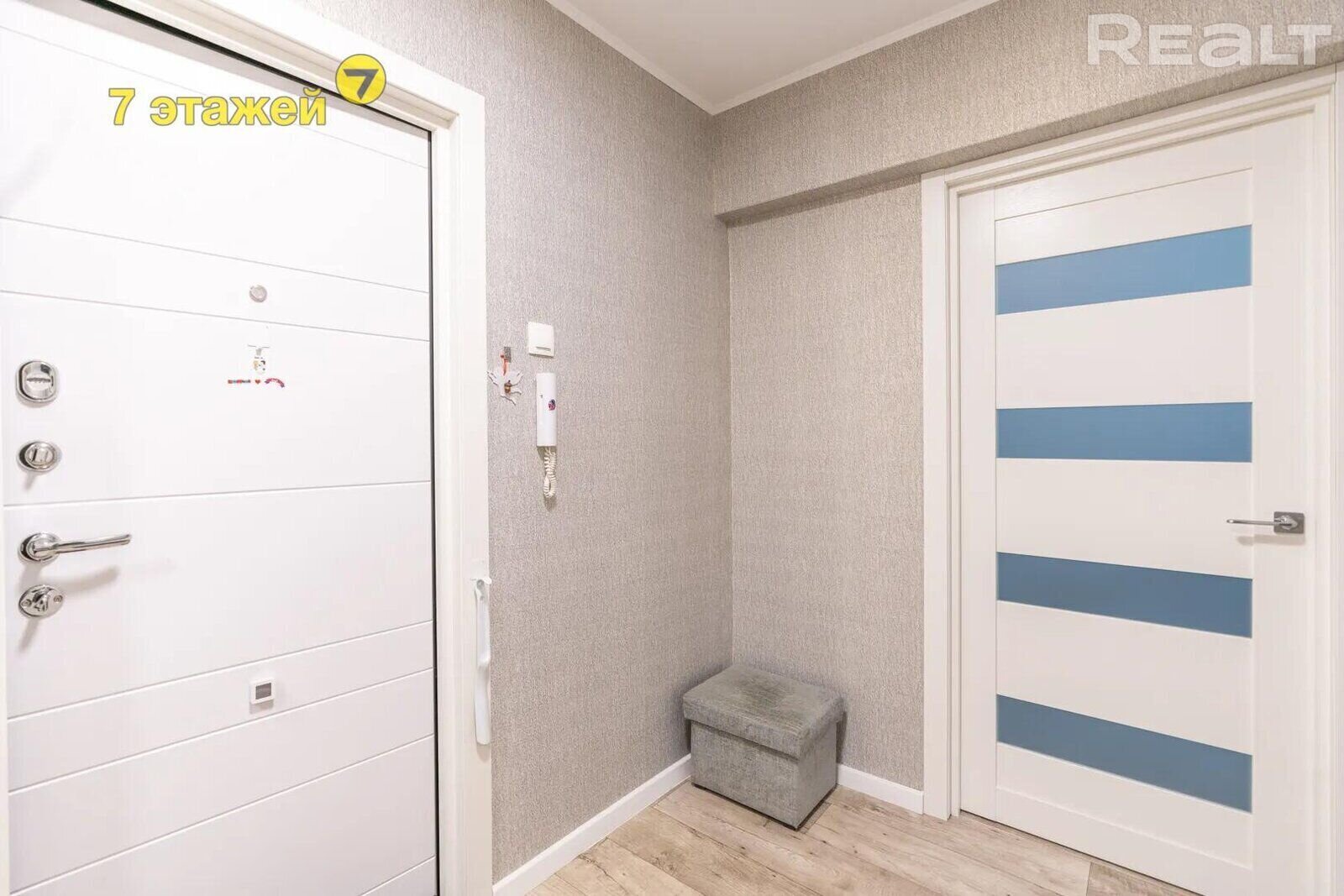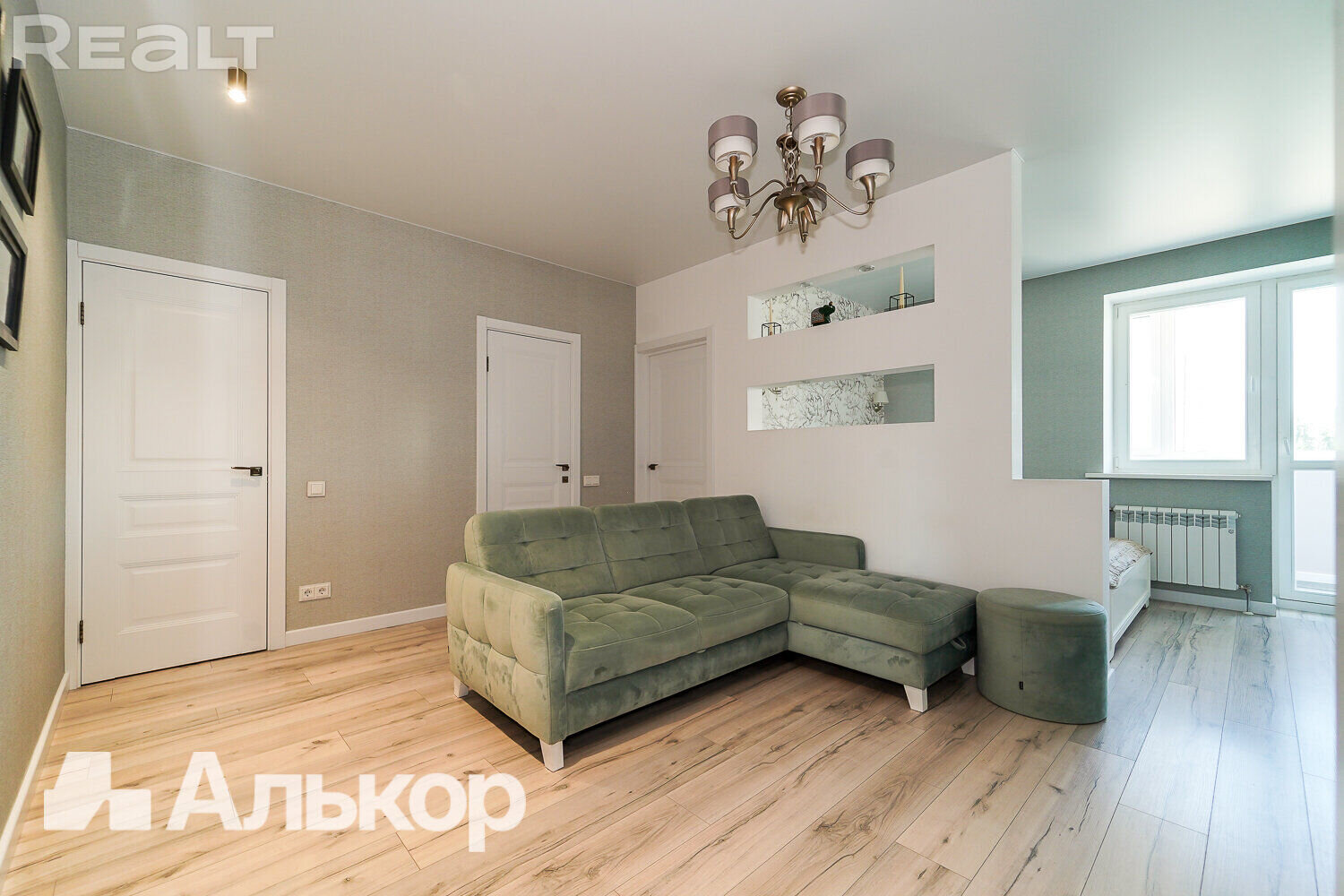Дом на Язепа Дроздовича, 6 был построен в 2020 году. Он десятиэтажный. На предпоследнем уровне продается однокомнатная квартира в 37,1 м² с отдельной кухней в 9,1 м².