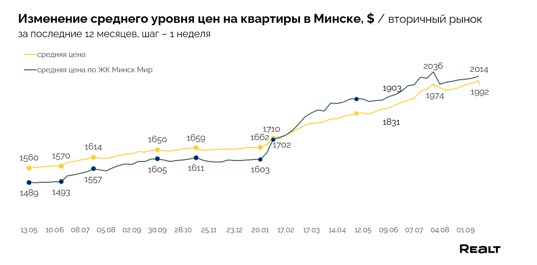 Стоимость квадрата на пороге 2000 долларов. Что произошло на вторичке Минска 8 — 15 сентября
