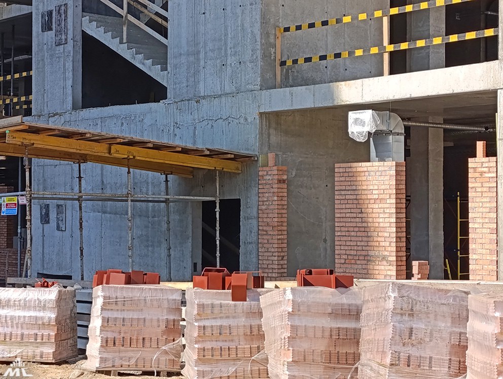 На объекте начались также каменные работы — кладка ведется на первом этаже.