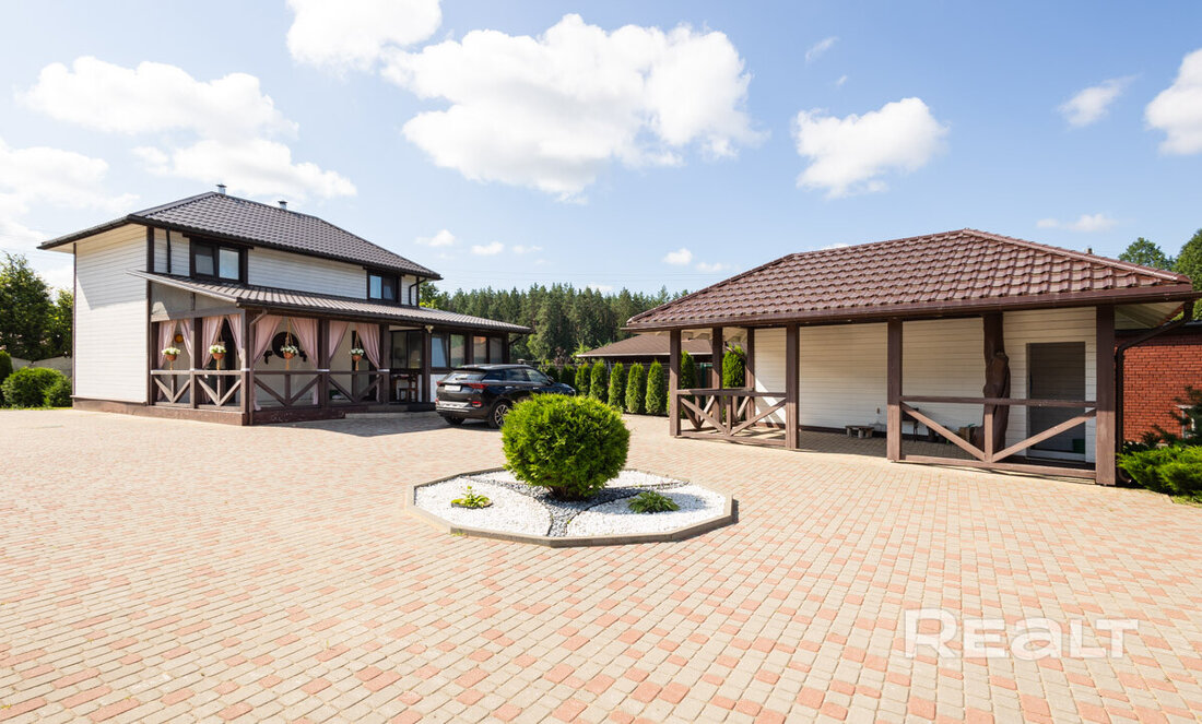 Здесь, вдали от городской суеты, продается уютный дом 2019 года постройки. Первый этаж у него деревянный, утепленный. Второй — каркасный. Фасад обшит имитацией бруса, покрашен в белый цвет. Сбоку пристроена большая крытая терраса. На крыше — металлочерепица.