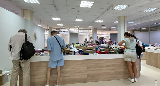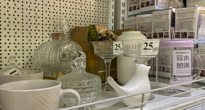 В прошлом году мы рассказывали о «Тивали», потому что здесь, в магазине «Мистер дом», можно купить товары из IKEA. Сегодня поднимаемся на тот же третий этаж и идем в новый магазин «Ценопад». Он занимает два павильона — 320-й и 321-й. Начинаем с того, что больше по размеру и просторнее — с 320-го. Людей даже в будний день здесь немало. Порой даже, чтобы подойти к полкам, приходится ждать, пока от них отойдут другие покупатели.