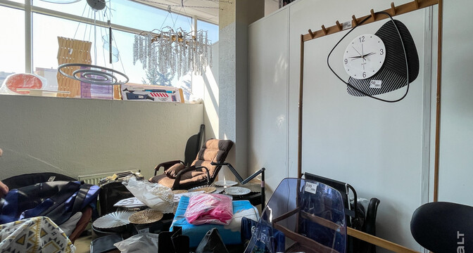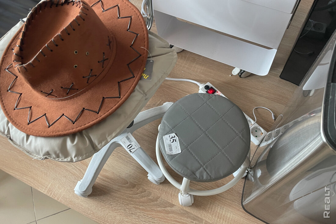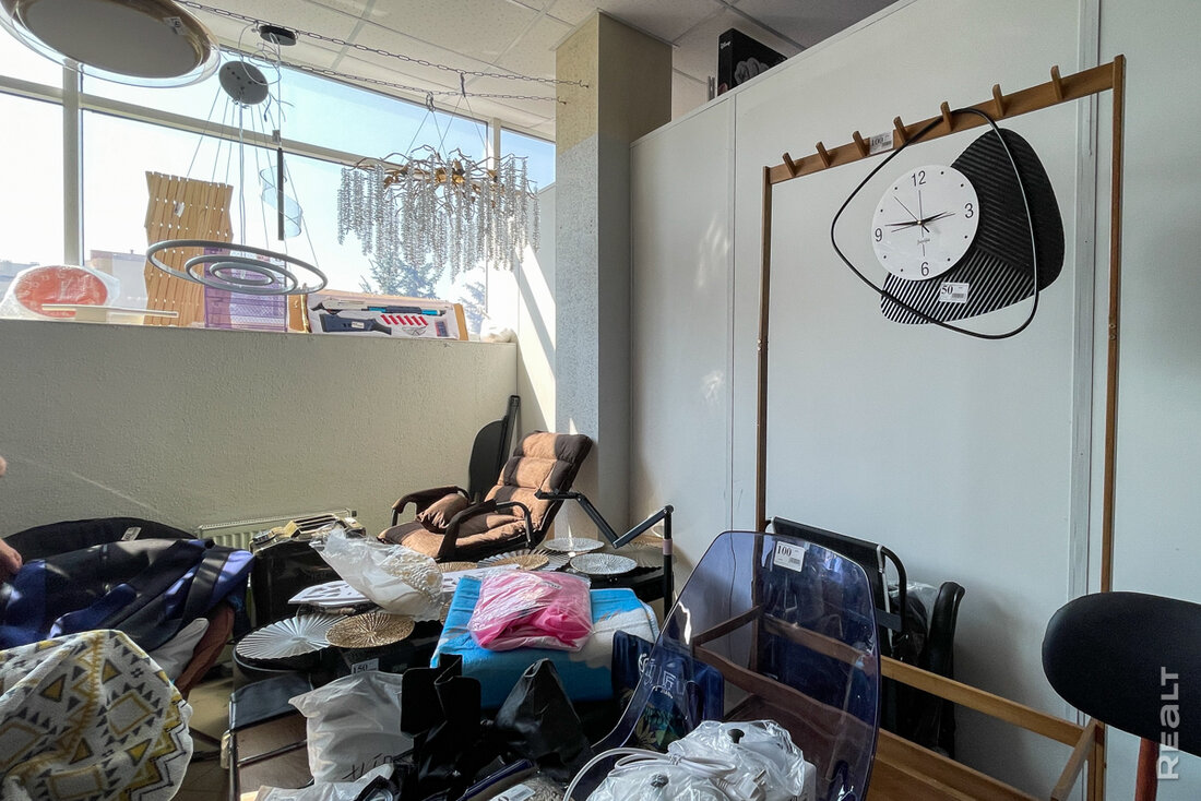 Здесь же, во втором павильоне, можно найти барный стул за 200 рублей, компьютерное кресло за 450 рублей, кресло интерьерное за 350 рублей, а складной диван — за 250. Еще есть люстры — от 150 до 250 рублей. Барный стол можно купить за 300 рублей. Правда, товары, в основном, единичные.
