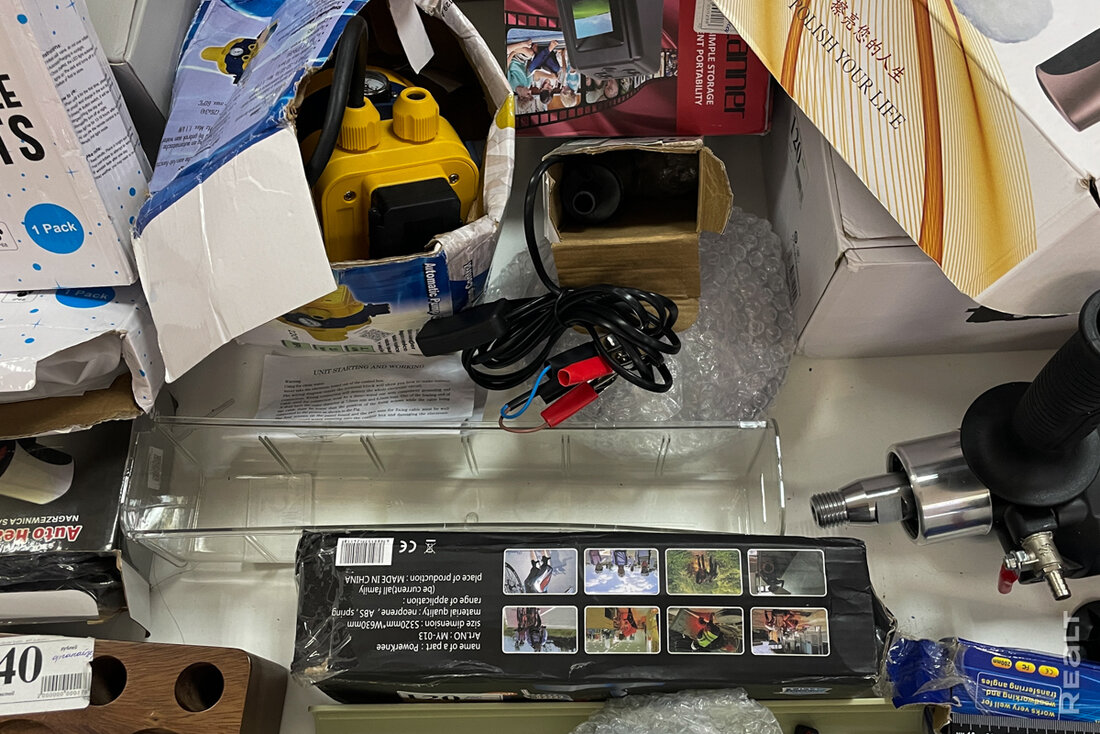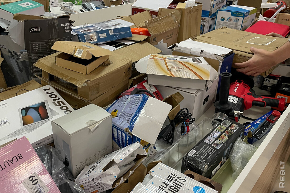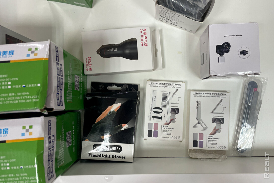 За 110 рублей можно купить реплику наушников Marshall (кстати, довольно неплохую реплику), за 50 — небольшую портативную колонку бренда hoco, от 70-и — колонки побольше размером. Одна из самых дорогих позиций — стайлер Dyson в кейсе. Конечно, не оригинал, но выглядит довольно аккуратно и обойдется в 350 рублей. За 550 рублей продается пылесос с надписью Dyson на упаковке.