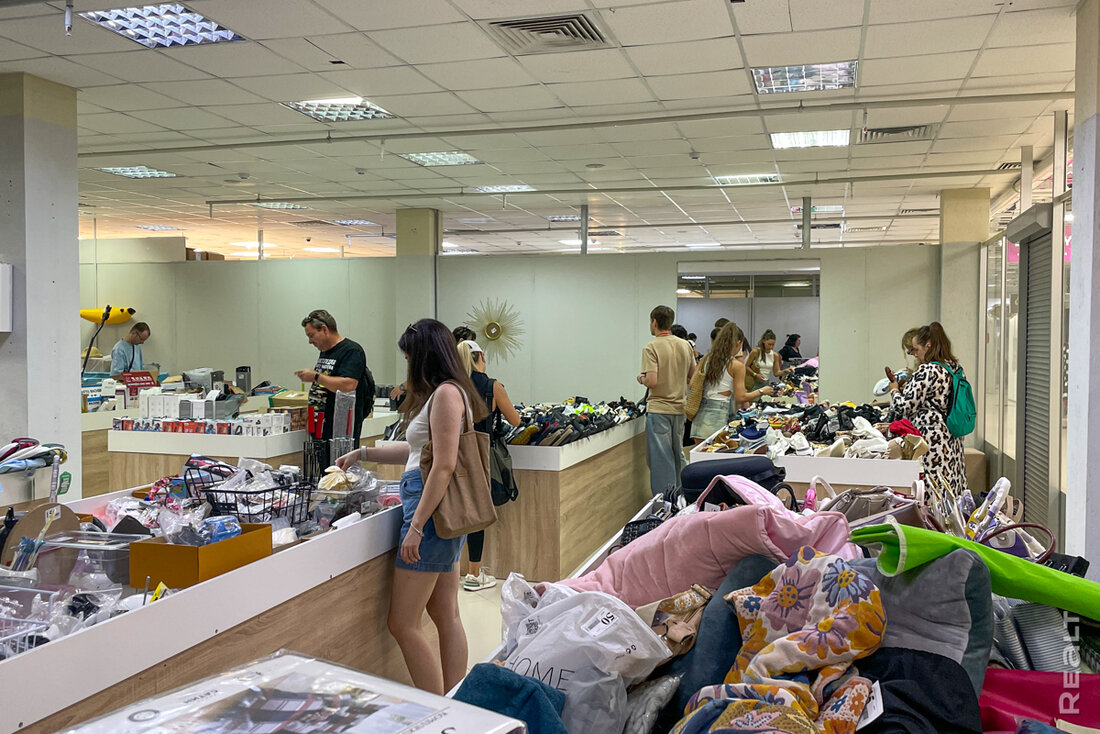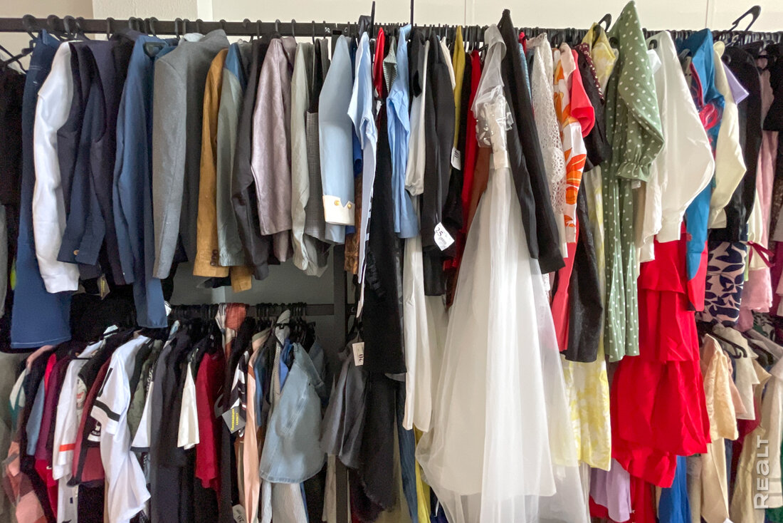 Та же ситуация и с одеждой — но это уже в соседнем павильоне. В честь открытия вся верхняя одежда продавалась по 15 рублей, а остальная — по 10. Судя по информации в инстаграме магазина, такие скидочные дни повторяются и дальше.