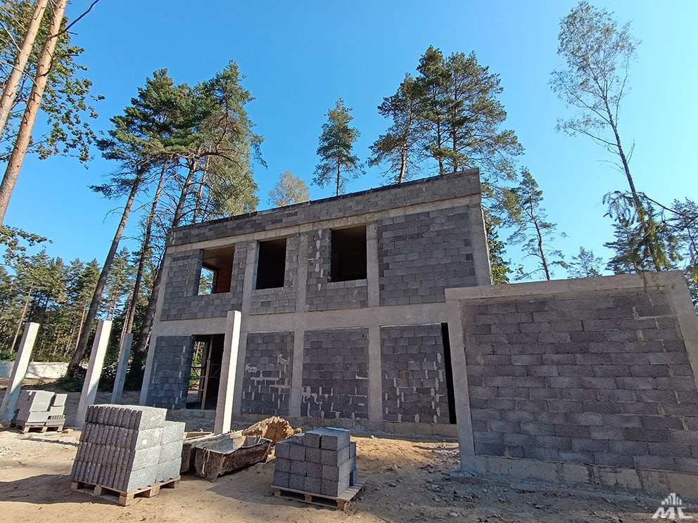 Строители ведут монолитные работы по каркасам, устройству стен и перегородок из керамзитобетона, установке стропильных систем и кровли — она из профилей ЛСТК. В домах, где завершены кладочные работы, начались штукатурные. На очереди — установка окон.