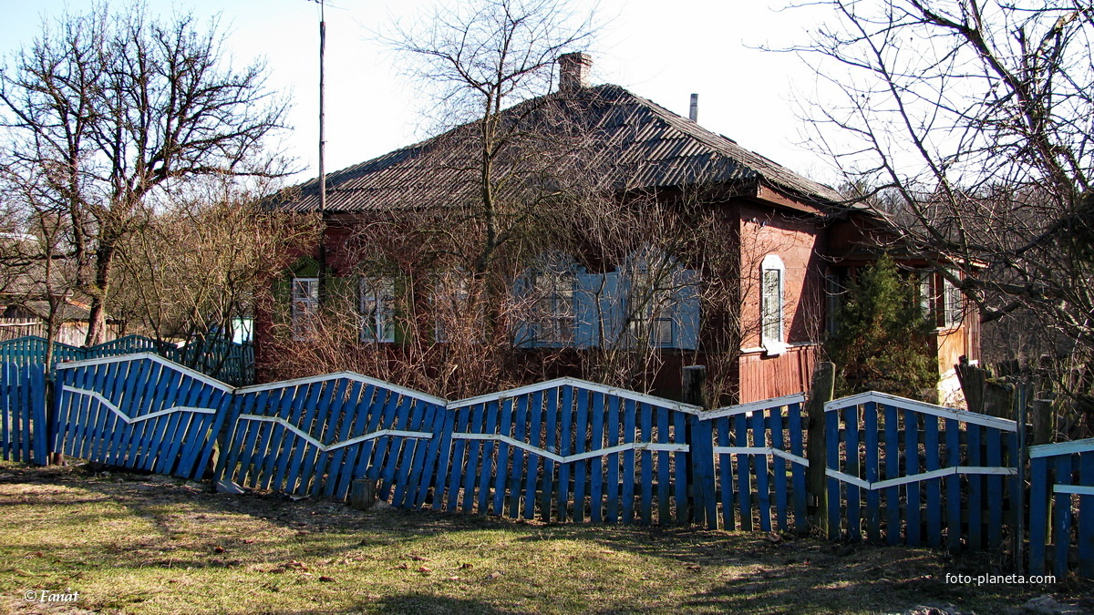 Участок расположен возле дома местной знаменитости, в каком-то смысле. Тут живет мужчина, которого все знают как мастера по ремонту велосипедов. А это, как известно, главное средство передвижения в деревне. К нему постоянно обращались с просьбами о ремонте. И он мог не только ремонтировать, но и собирать новые велосипеды из найденных и принесённых кем-то запчастей. Дом он тоже собрал себе сам. Буквально собрал, почти из подручных материалов. Выглядит он сегодня также необычно, как и много десятилетий тому. Настолько необычно, что, кажется, даже попадал на страницы местной прессы) Но история не о нем.