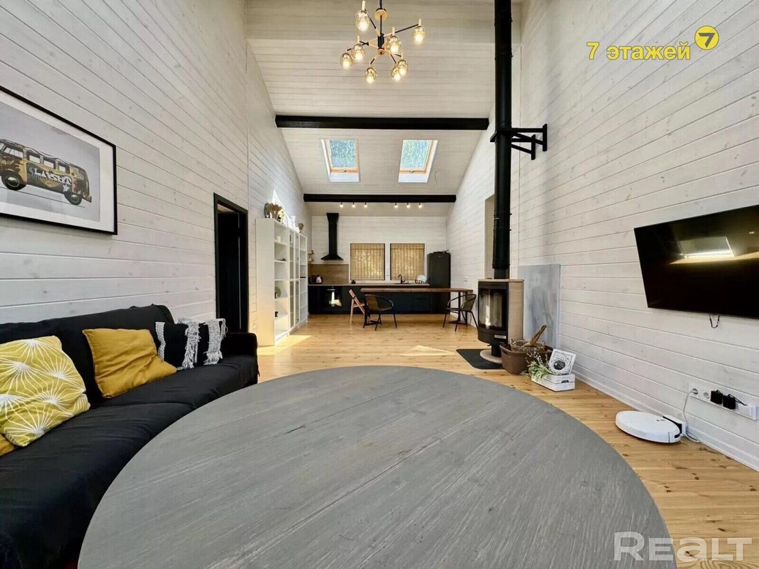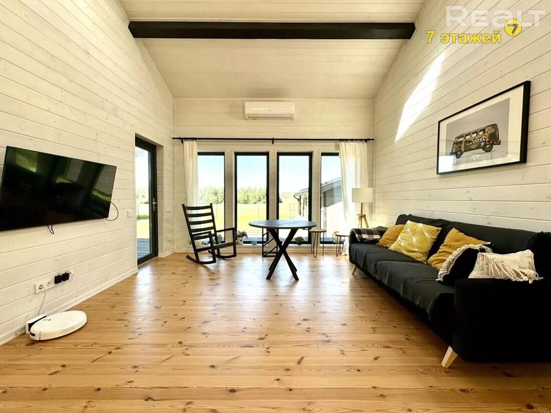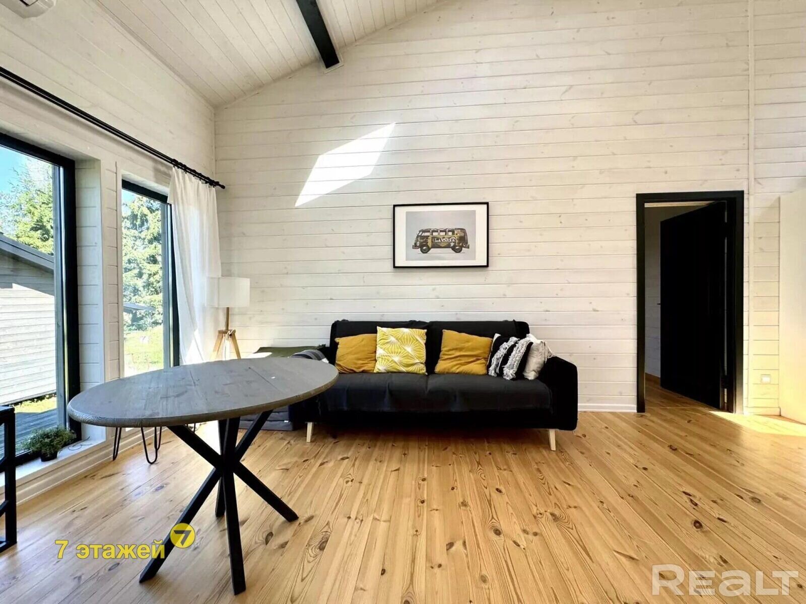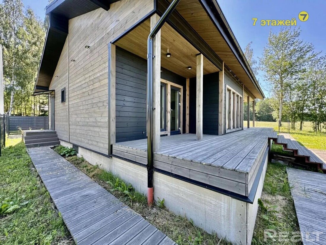 В Минском районе продается хороший современный дом: тут высокие потолки, установлены окна в пол, есть терраса, четыре спальни и коммуникации, позволяющие оставаться жить и зимой. Его отдают по хорошей цене. Взгляните, как выглядит.