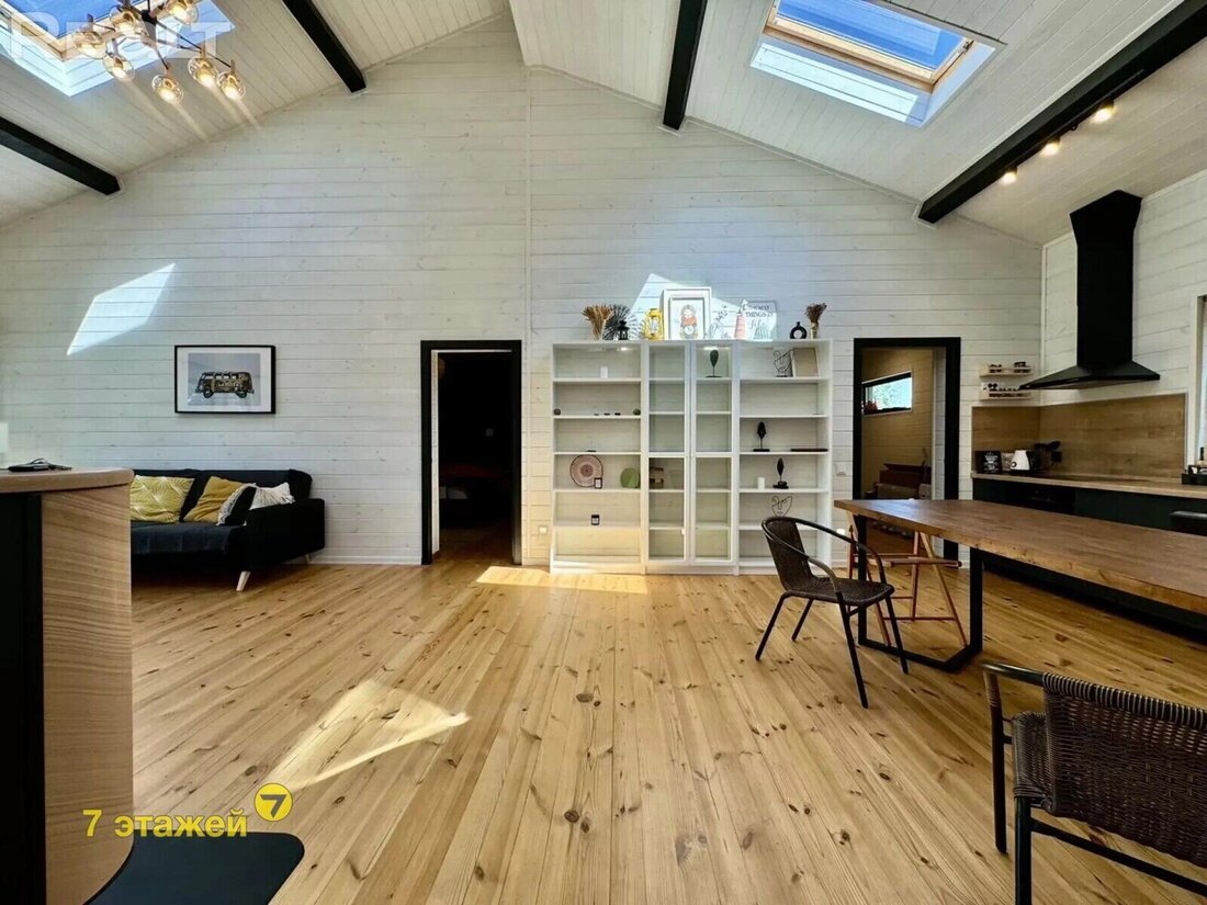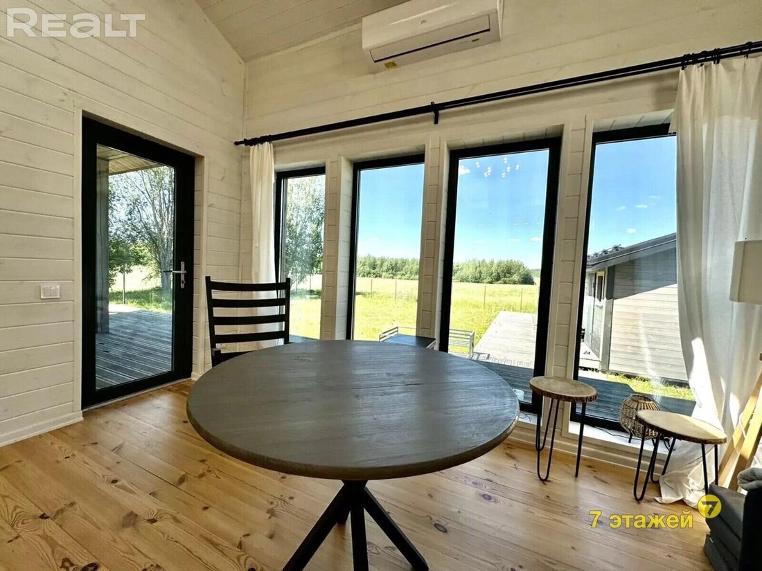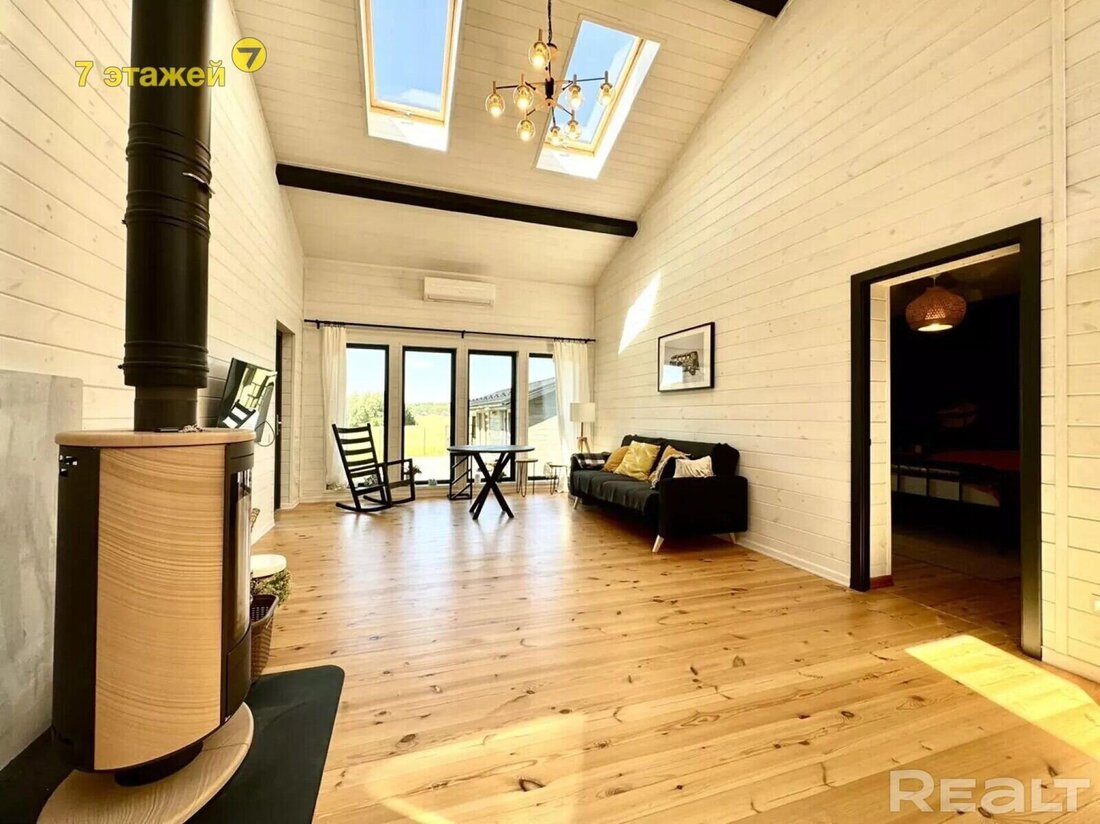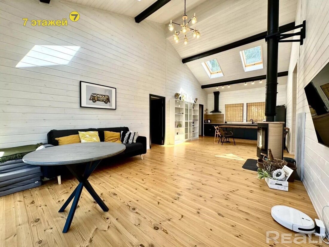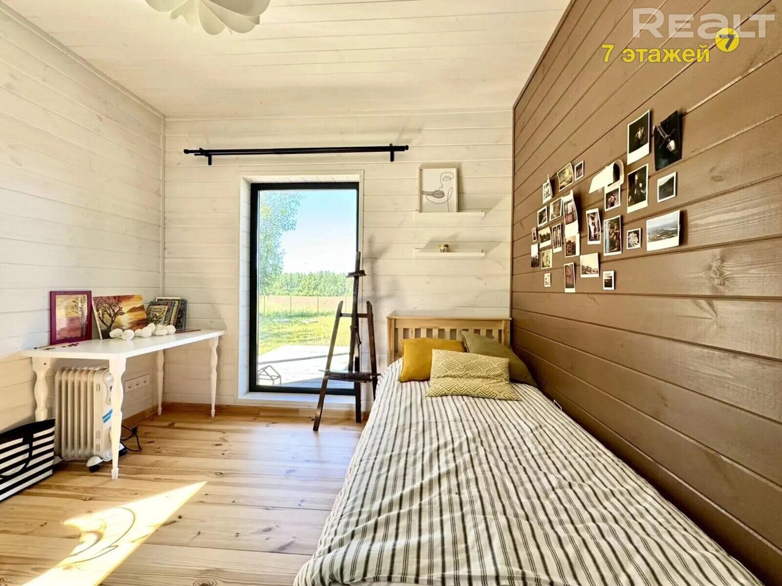 В Минском районе продается хороший современный дом: тут высокие потолки, установлены окна в пол, есть терраса, четыре спальни и коммуникации, позволяющие оставаться жить и зимой. Его отдают по хорошей цене. Взгляните, как выглядит.