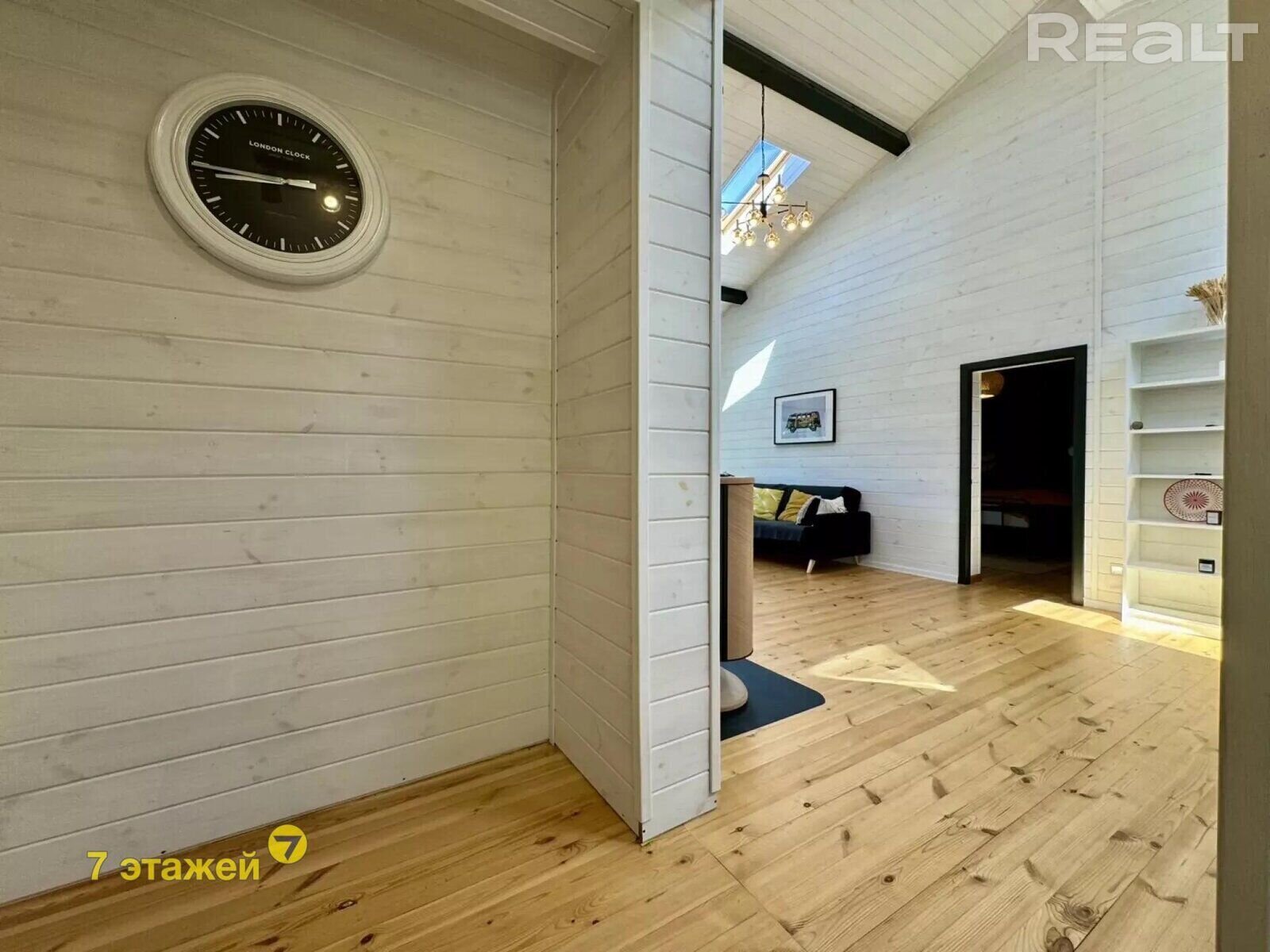 Дом продается в СТ «Надежда-Щербины» в Минском районе. Его возвели из дерева в 2023 году площадью 182 м². Утеплили каменной ватой. На крыше лежит фальцевая кровля.
