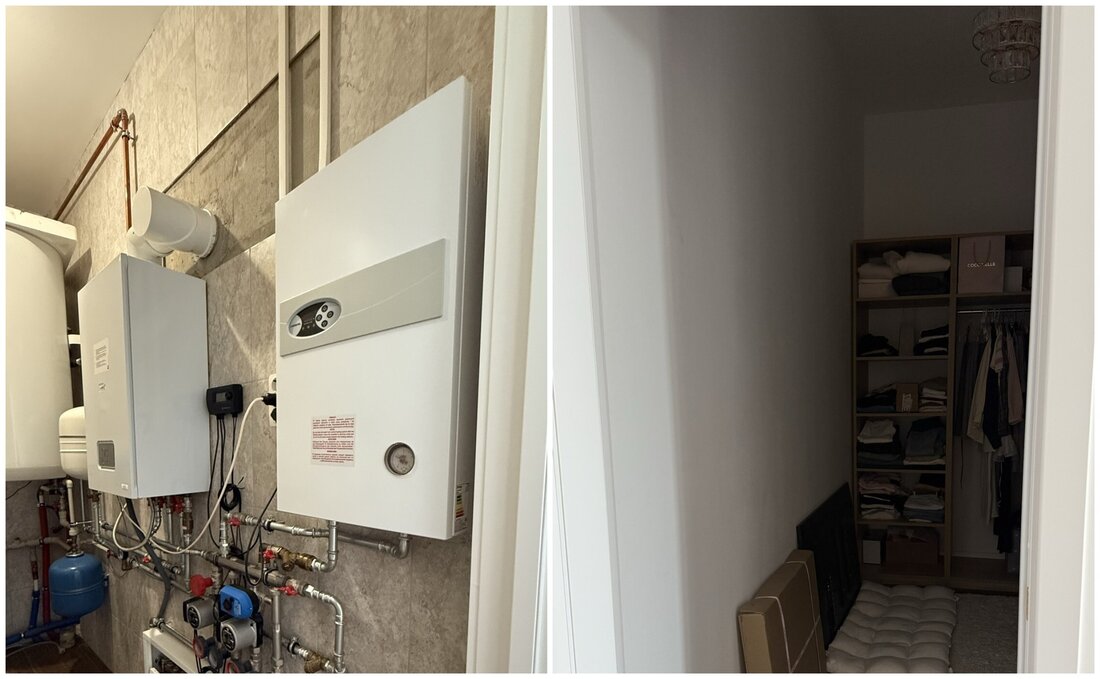Изолированы гардеробная и котельная. Совмещенный санузел облицован плиткой. Вода поступает из скважины, канализация — местная. Отапливается дом на газу. Кстати, во всех комнатах сделан теплый пол.