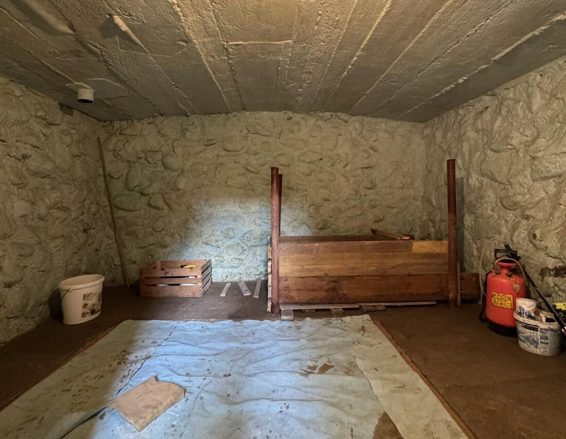Хозяйская часть состоит из добротного сарая из блоков и большого сухого погреба.