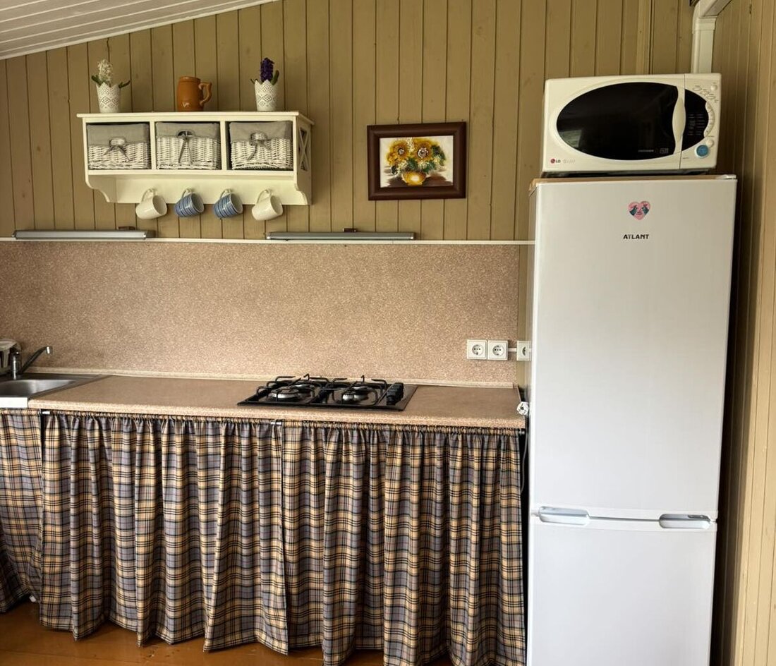 Рядом с домом расположилась еще одно строение, которое совмещает в себе функции бани и гостевого дома.