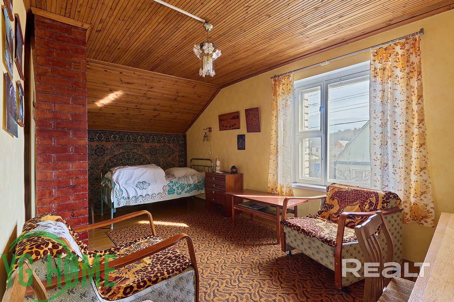 Сегодня представим вам недорогую дачу в очень хорошем месте. Этот кирпичный дом с балконом и ретро-обстановкой находится всего в 16 километрах от Минска. Двухэтажная дача обставлена мебелью и готова к проживанию. Рядом с поселком — лес и известный спорткомплекс. Рассказываем, сколько стоит такой загородный дом.