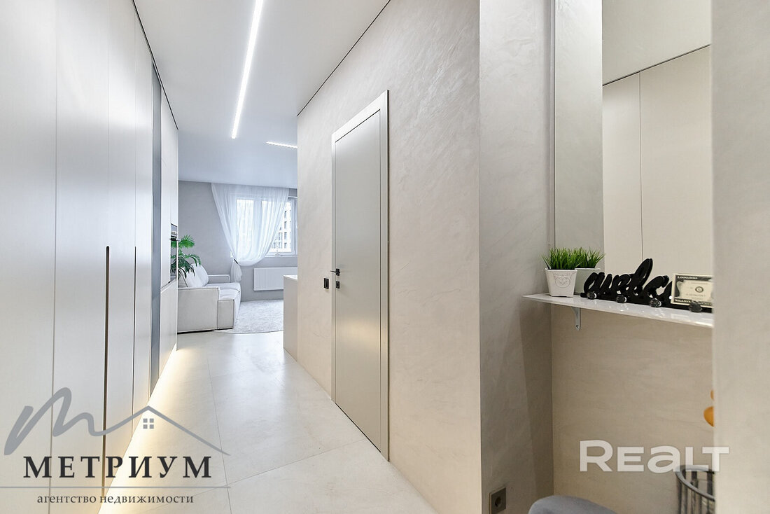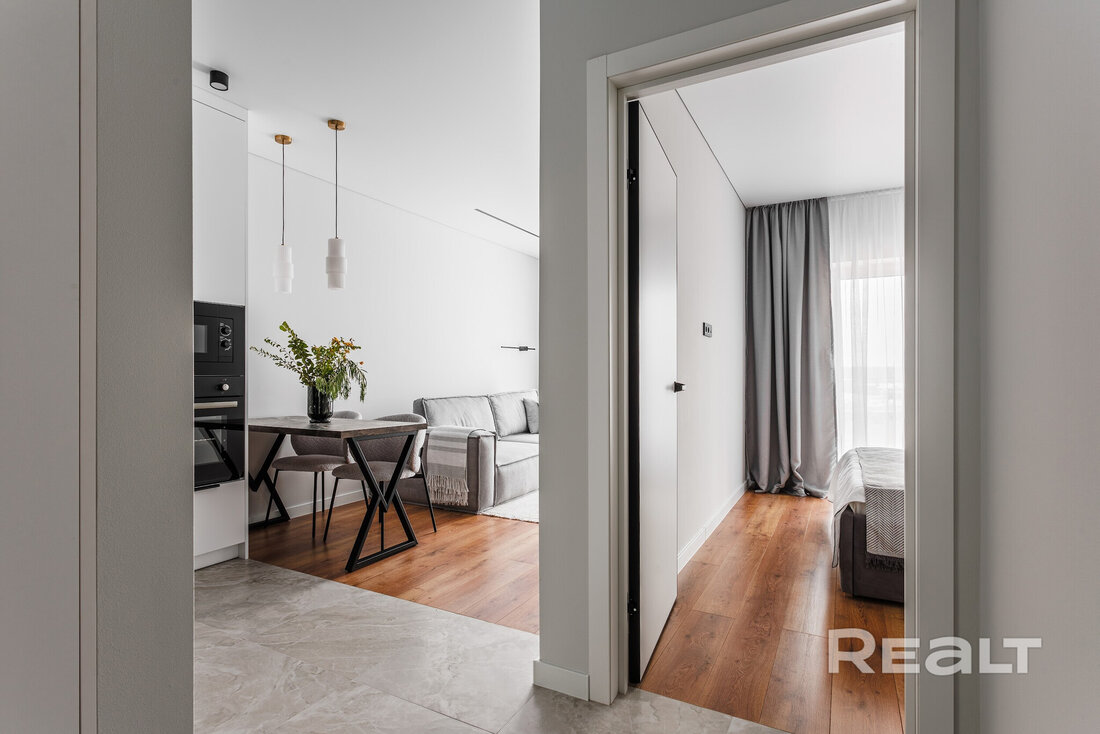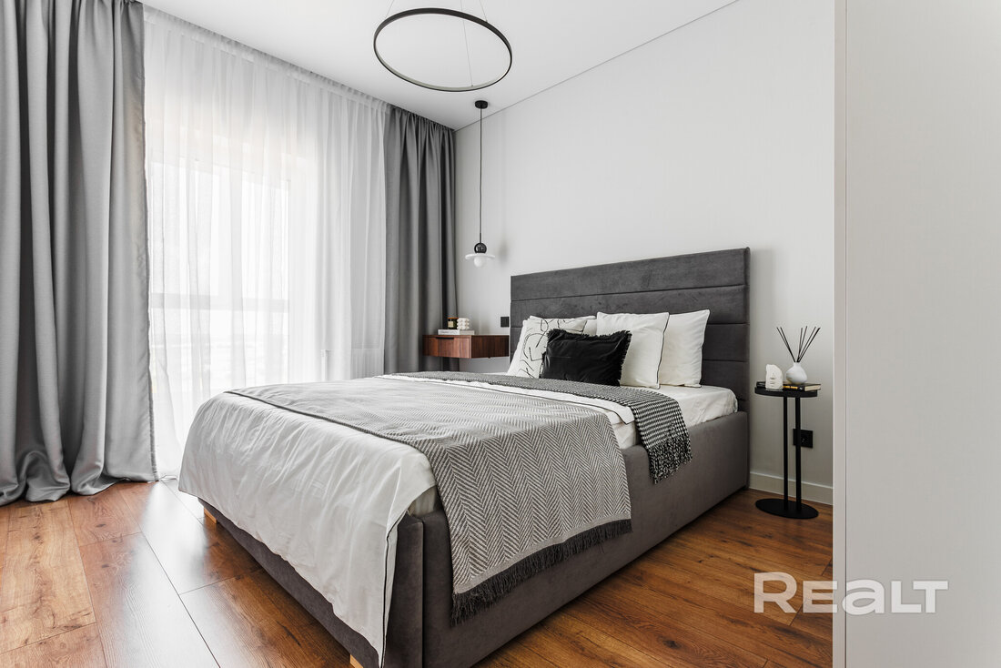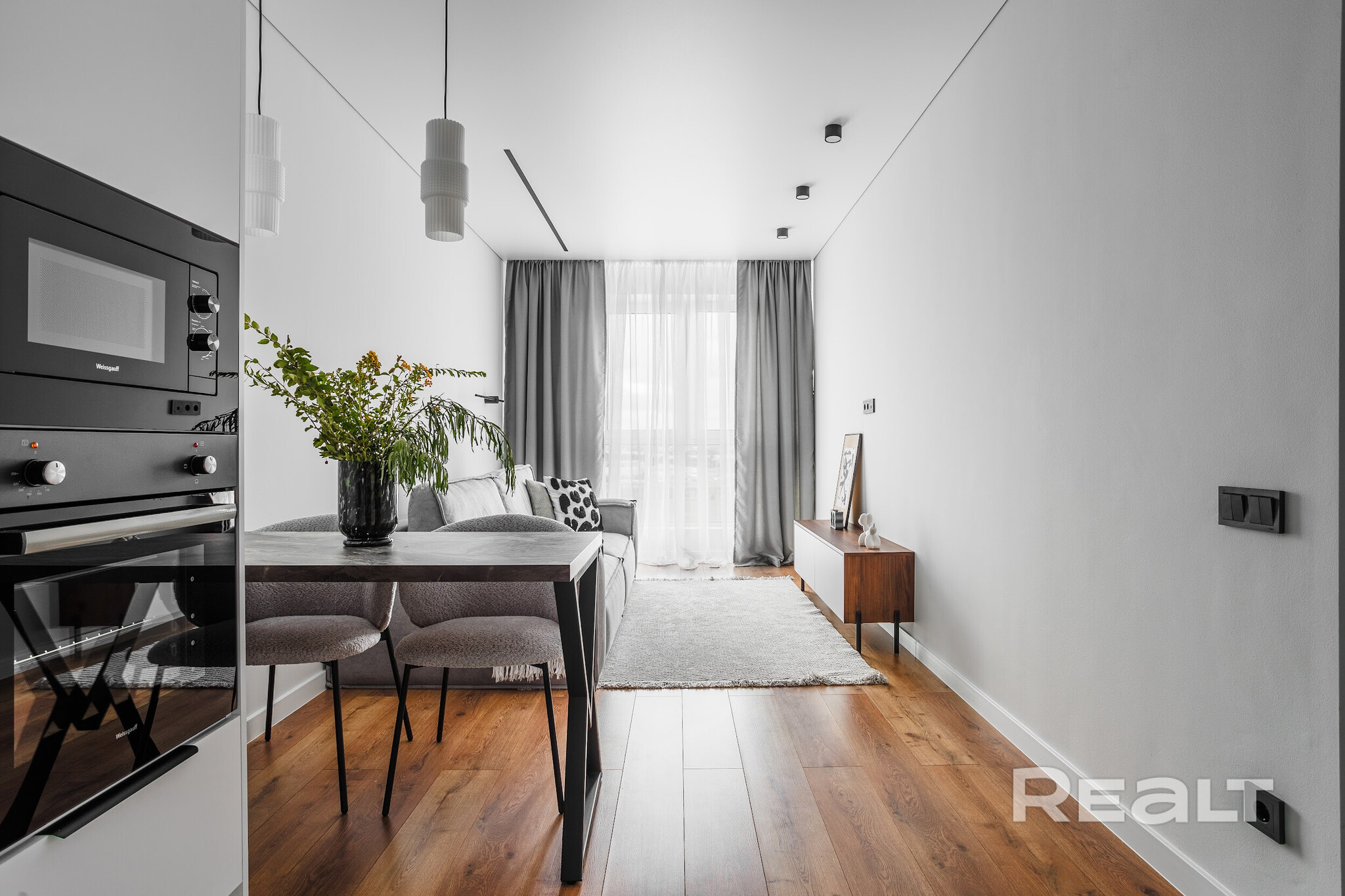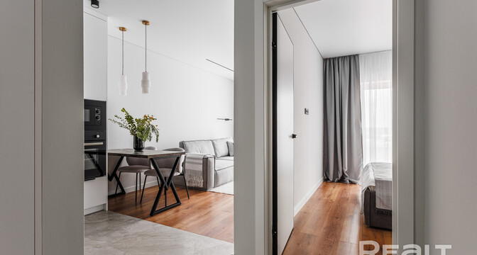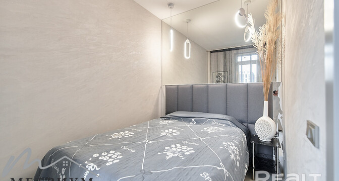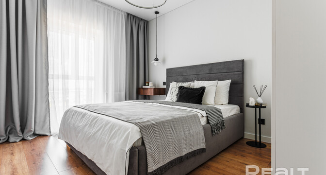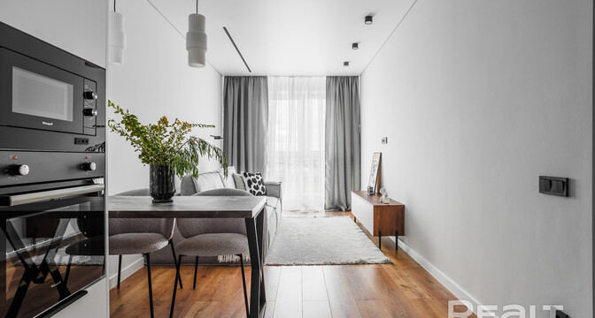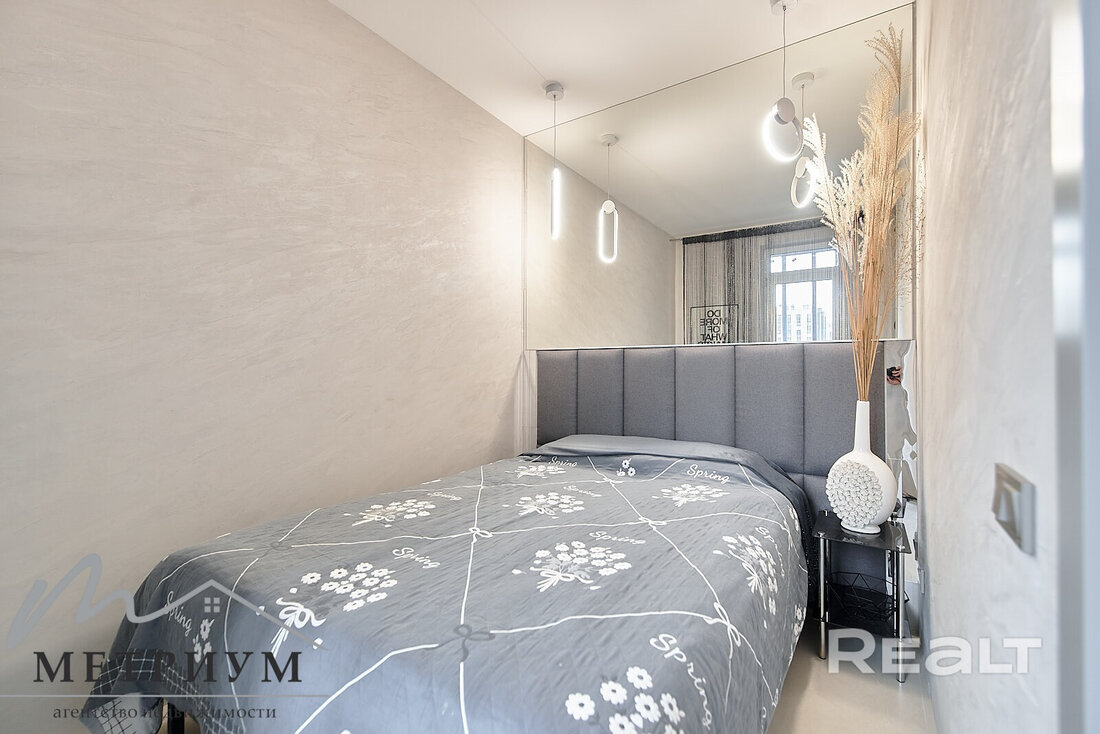 Не обойдемся в подборке без квартиры в Минск-Мире. Это евродвушка в доме «Ча-ча-ча» в квартале Мировых танцев. Дом по адресу Брилевская, 25. 20-й этаж 25-этажного дома.