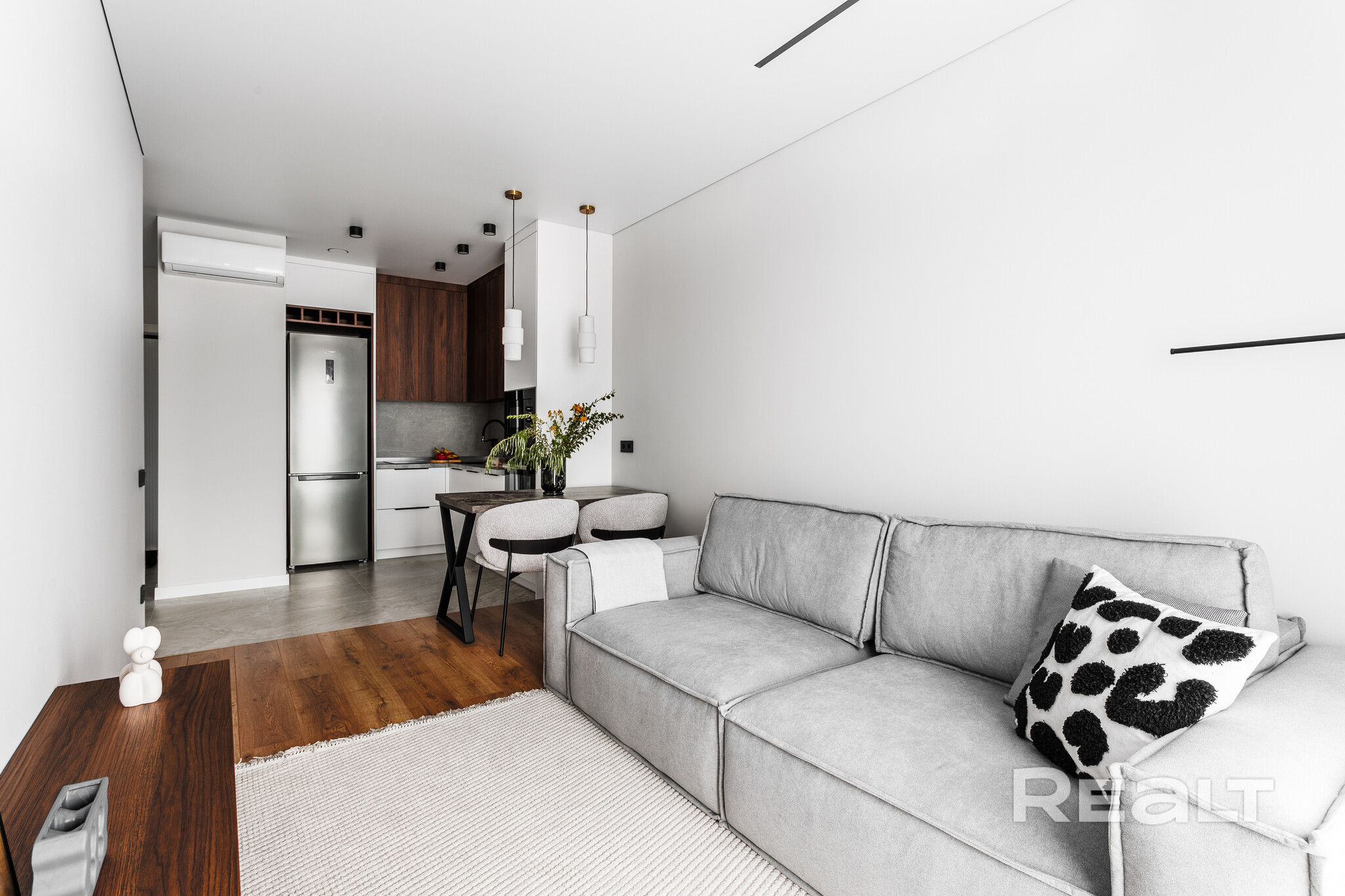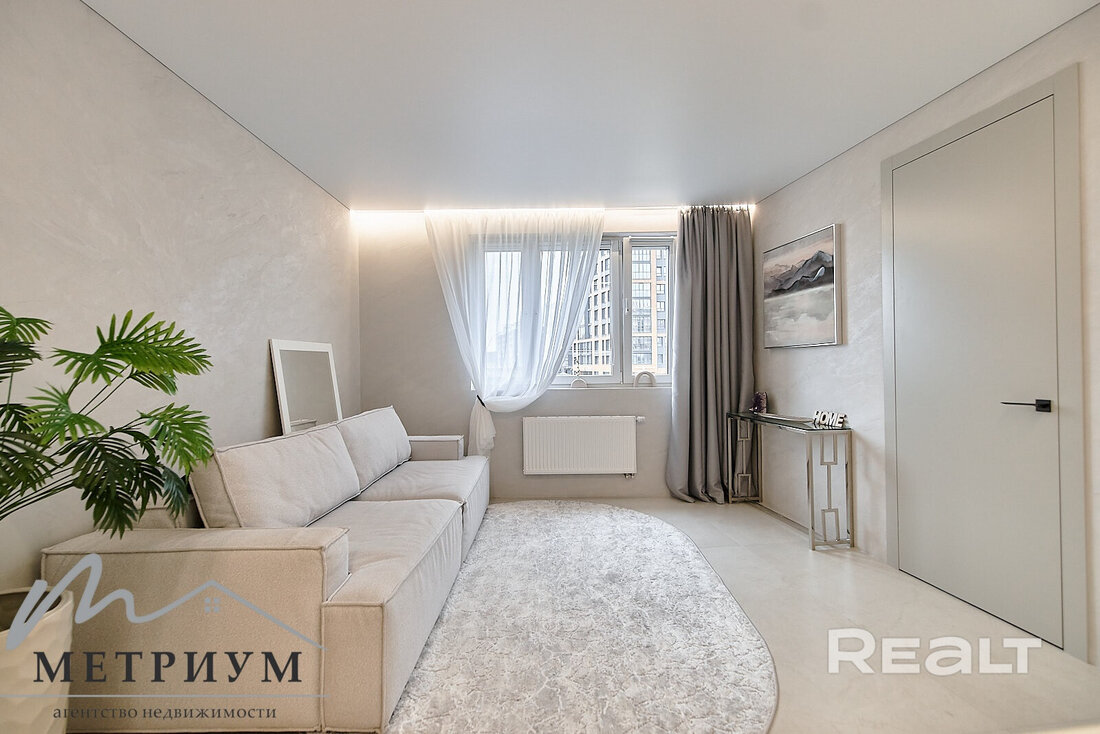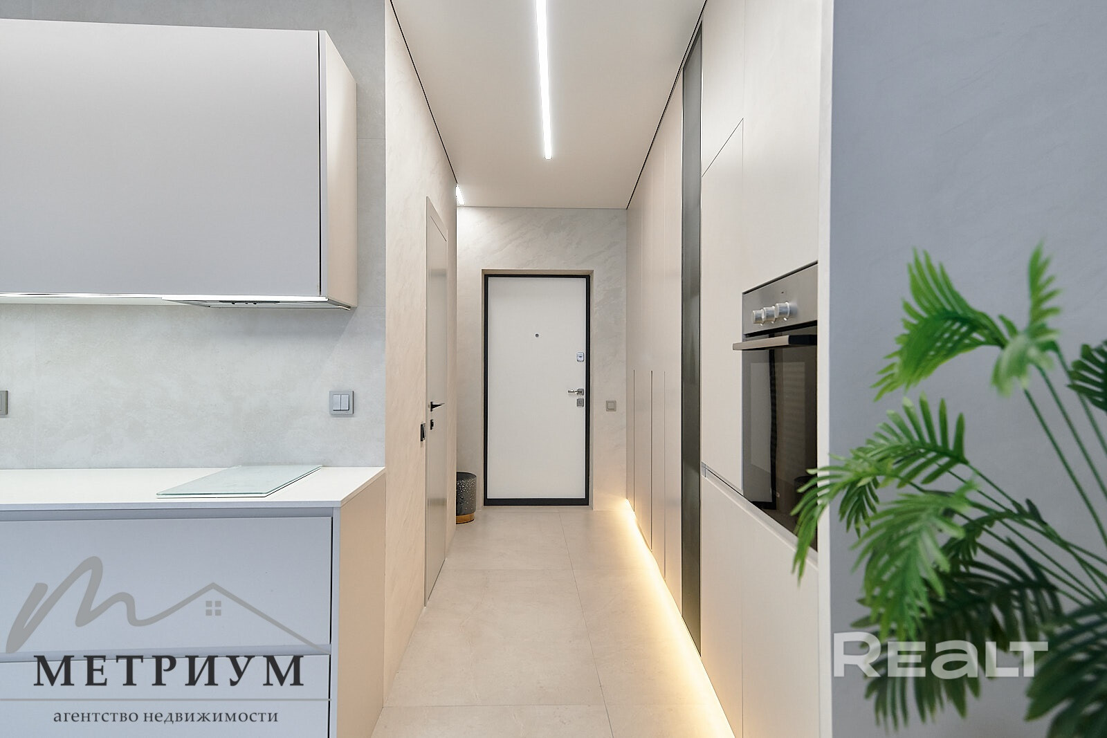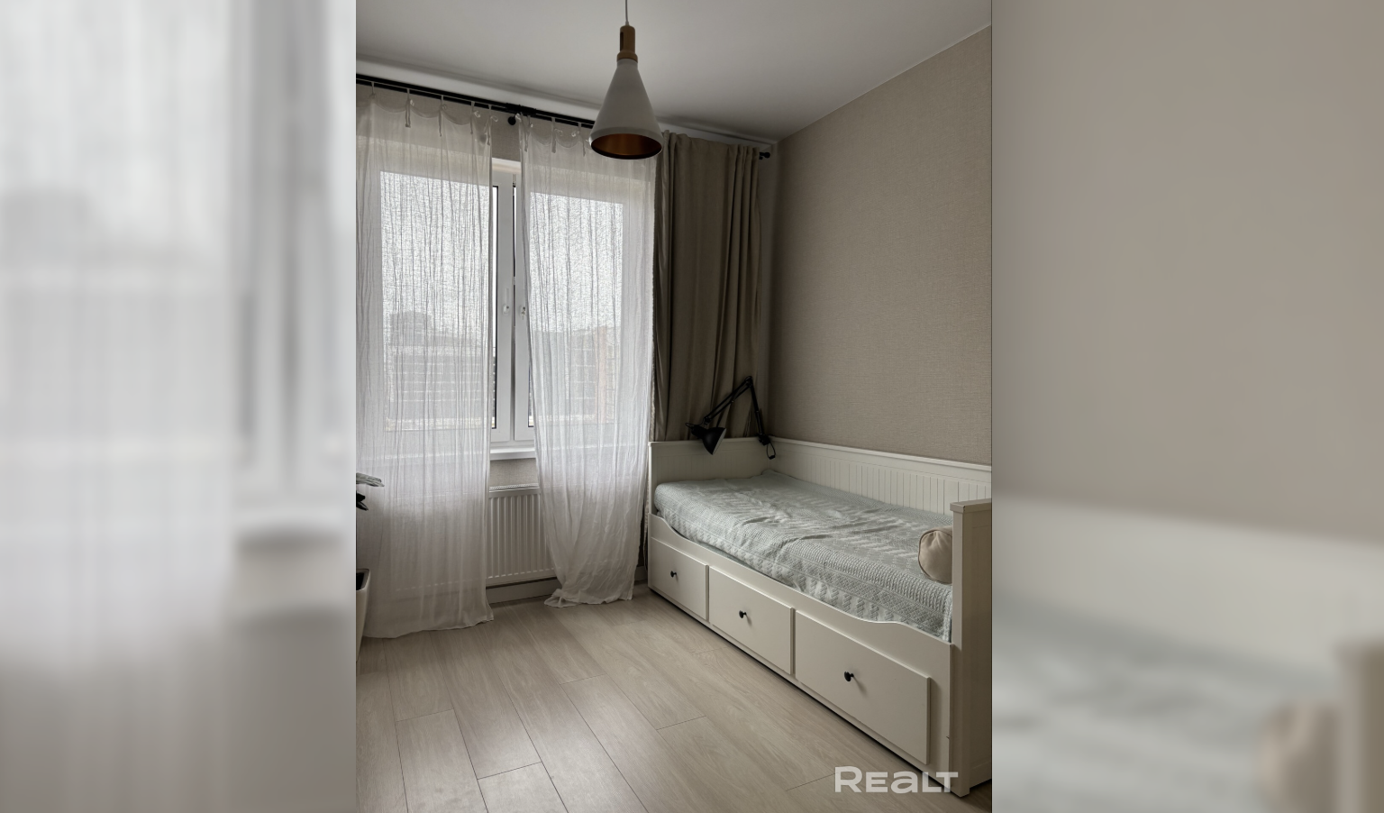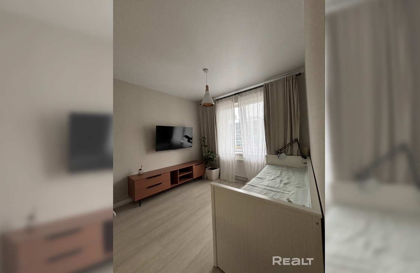 Не обойдемся в подборке без квартиры в Минск-Мире. Это евродвушка в доме «Ча-ча-ча» в квартале Мировых танцев. Дом по адресу Брилевская, 25. 20-й этаж 25-этажного дома.