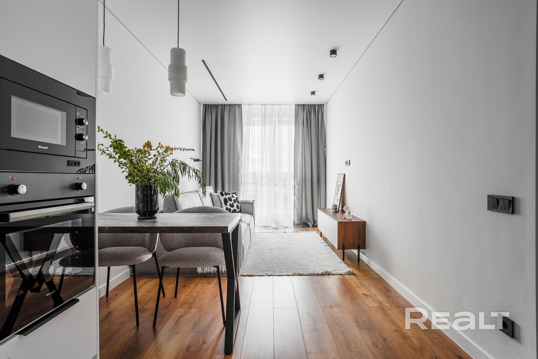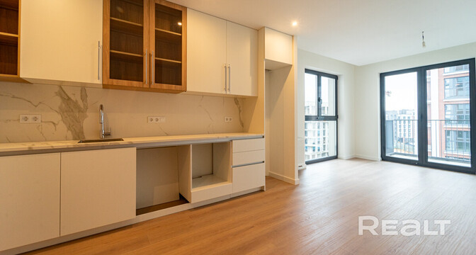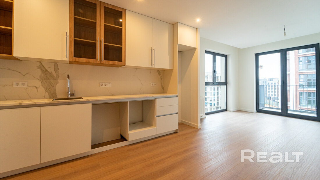 Недавно стоимость этой квартиры снизили, и это самая бюджетная евродвушка нашей подборки. Она обойдется покупателю в 99 800 долларов. Квадрат стоит 2 654 доллара. Для первого взноса при покупке в лизинг будет достаточно суммы меньше 30 тысяч долларов. В объявлении можно просчитать различные условия лизинга.