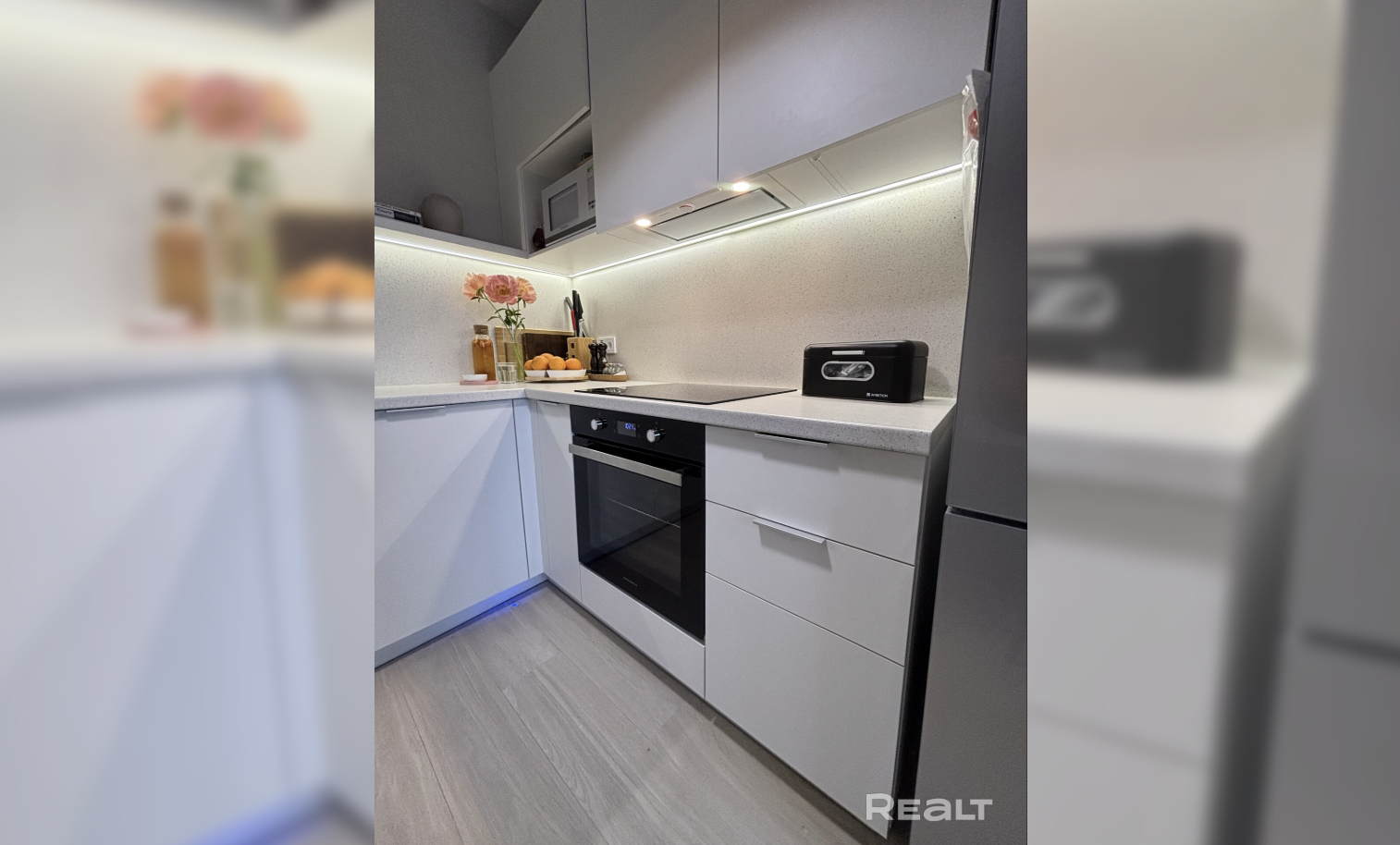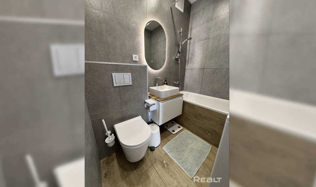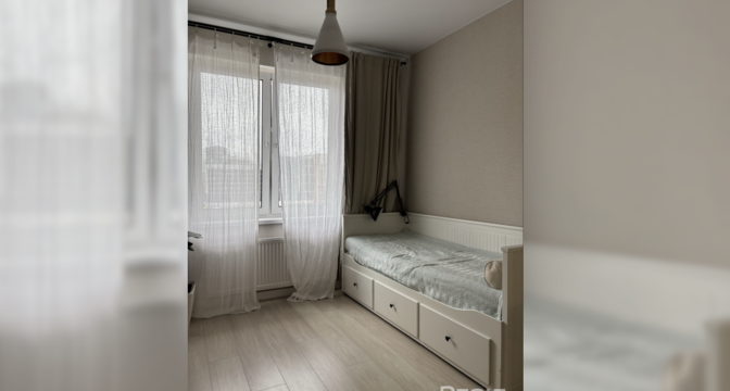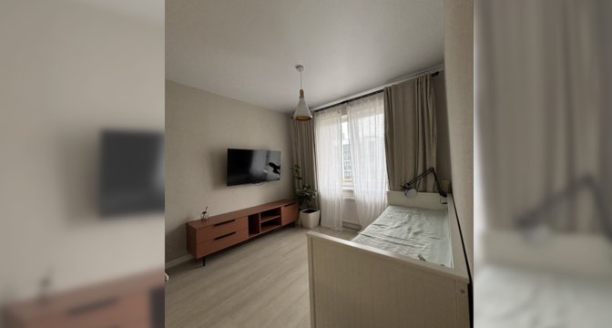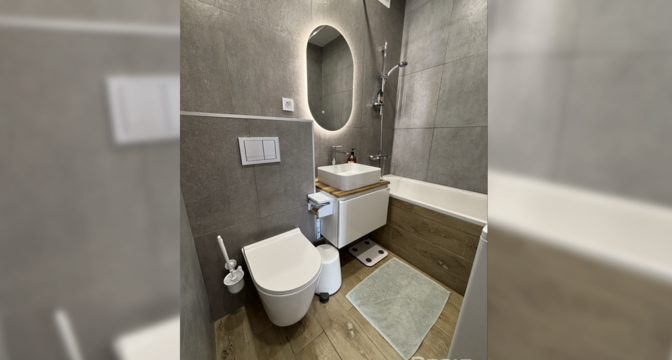 Общая площадь — 44 квадрата. В квартире сделан ремонт, но технику и мебель надо будет докупать. В кухне есть гарнитур, в спальне встроенный шкаф. В совмещенном санузле установлена ванна и гигиенический душ. Есть балкон.
