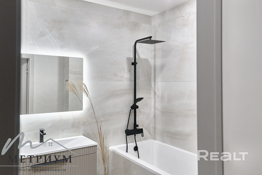 Стоимость этой евродвушки — 111 300 долларов. Метр — 2 619 долларов. Для первого взноса будет достаточно суммы меньше 34 тысяч долларов. Просчитать ежемесячные платежи можно в объявлении.