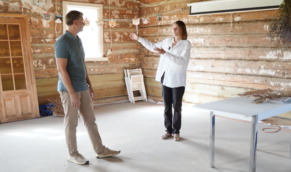 Живописный участок постепенно становится не только домом для Светы и Миши, но и местом, где они уютно проводят вечера с друзьями. «Зимой, например, мы устраивали покатушки на лыжах по деревне, а потом жарили на маленькой плите драники и колбасу, грелись на печке, когда она еще была. Это было такое первое запоминающееся событие с друзьями. А этим летом мы здесь праздновали день рождения Миши. Поставили в саду стол, накрыли его, привезли проектор и устроили кинопросмотр под открытым небом. Было очень атмосферно и необычно. Какая-то даже волшебная обстановка. После этого еще дважды так собирались. Всем это очень запомнилось. Мне кажется, в деревне, на природе всегда хорошо, даже если толком и дома нет. Хотелось бы со временем, когда сделаем чуть лучше условия, чаще устраивать какие-то тематические встречи, праздники. Нам самим нравится так собираться, встречать друзей и понимать, что наш сад и дом становятся таким местом притяжения, которое объединяет людей из разных сфер», — замечает Света. А полный выпуск вы можете посмотреть на нашем Youtube-канале.
