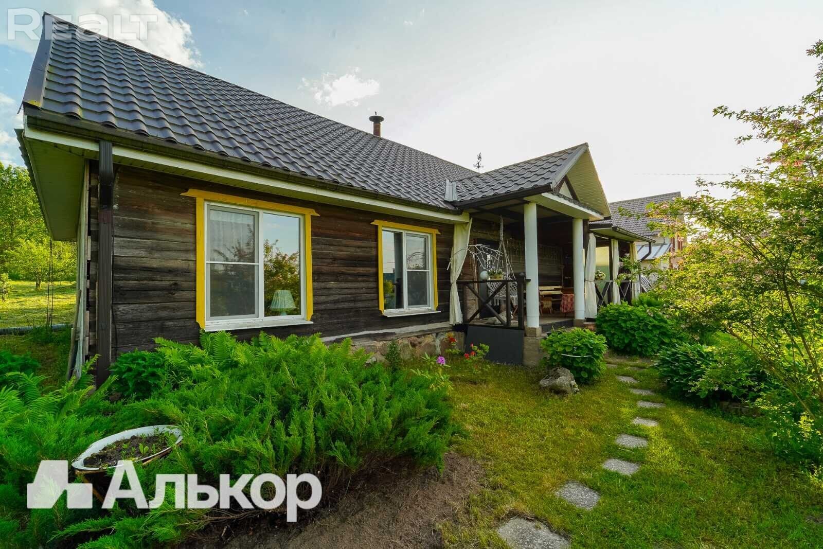 Находится этот дом в деревне Курневичи, на улице, примыкающей к большому грибному лесу. Рядом расположено красивое озеро. Это еще Минский район, расстояние до МКАД — 36 километров.