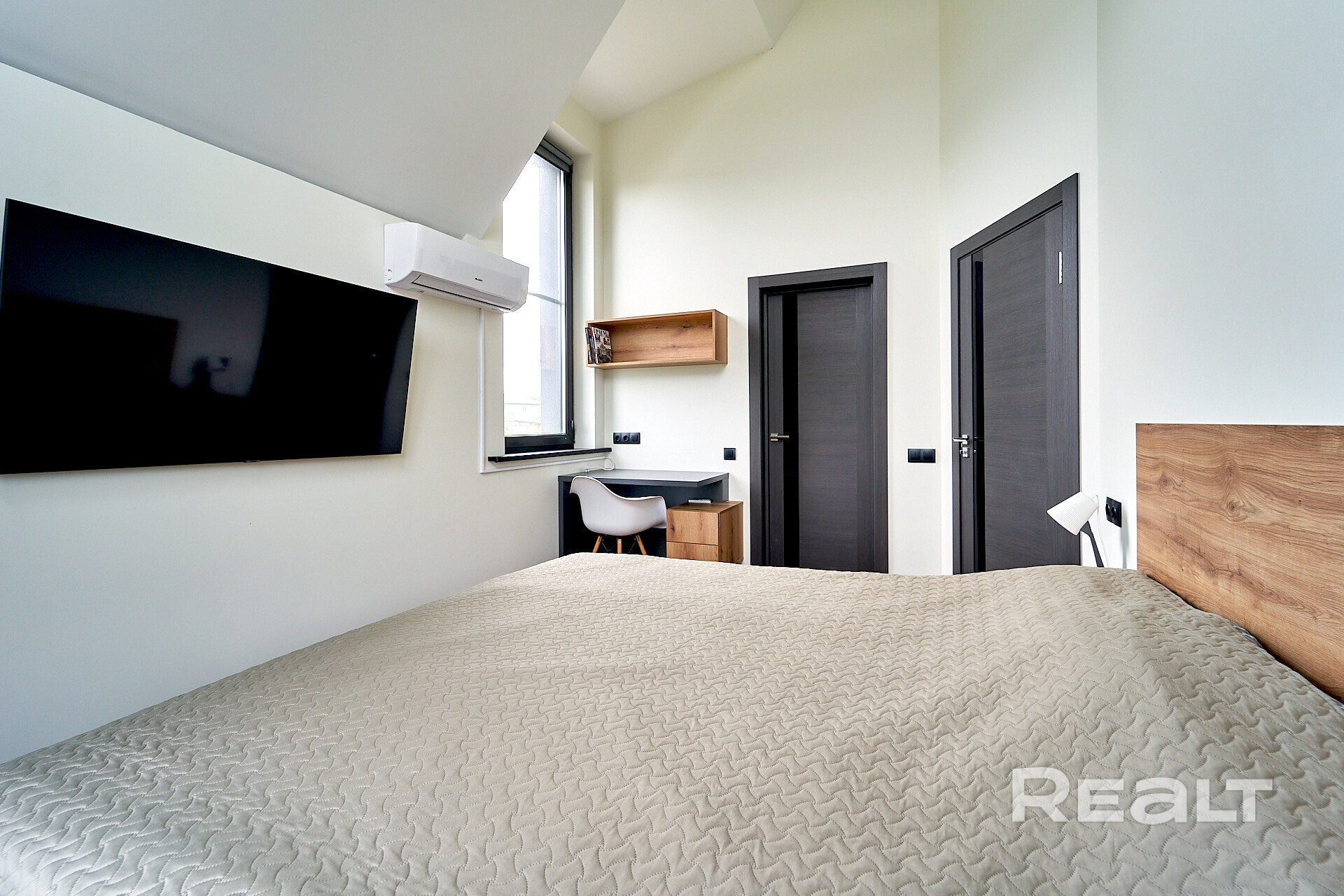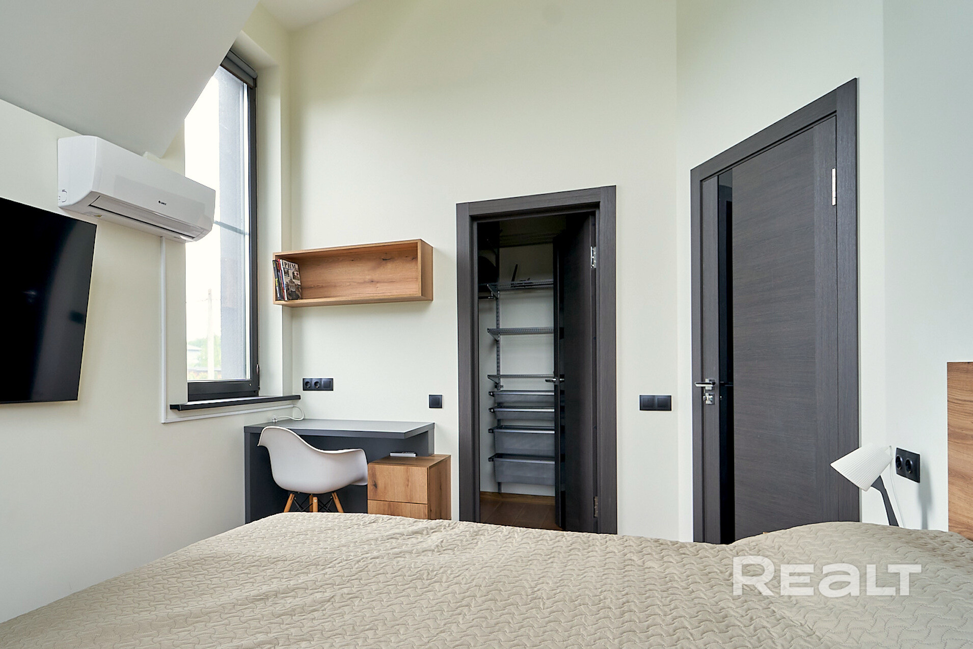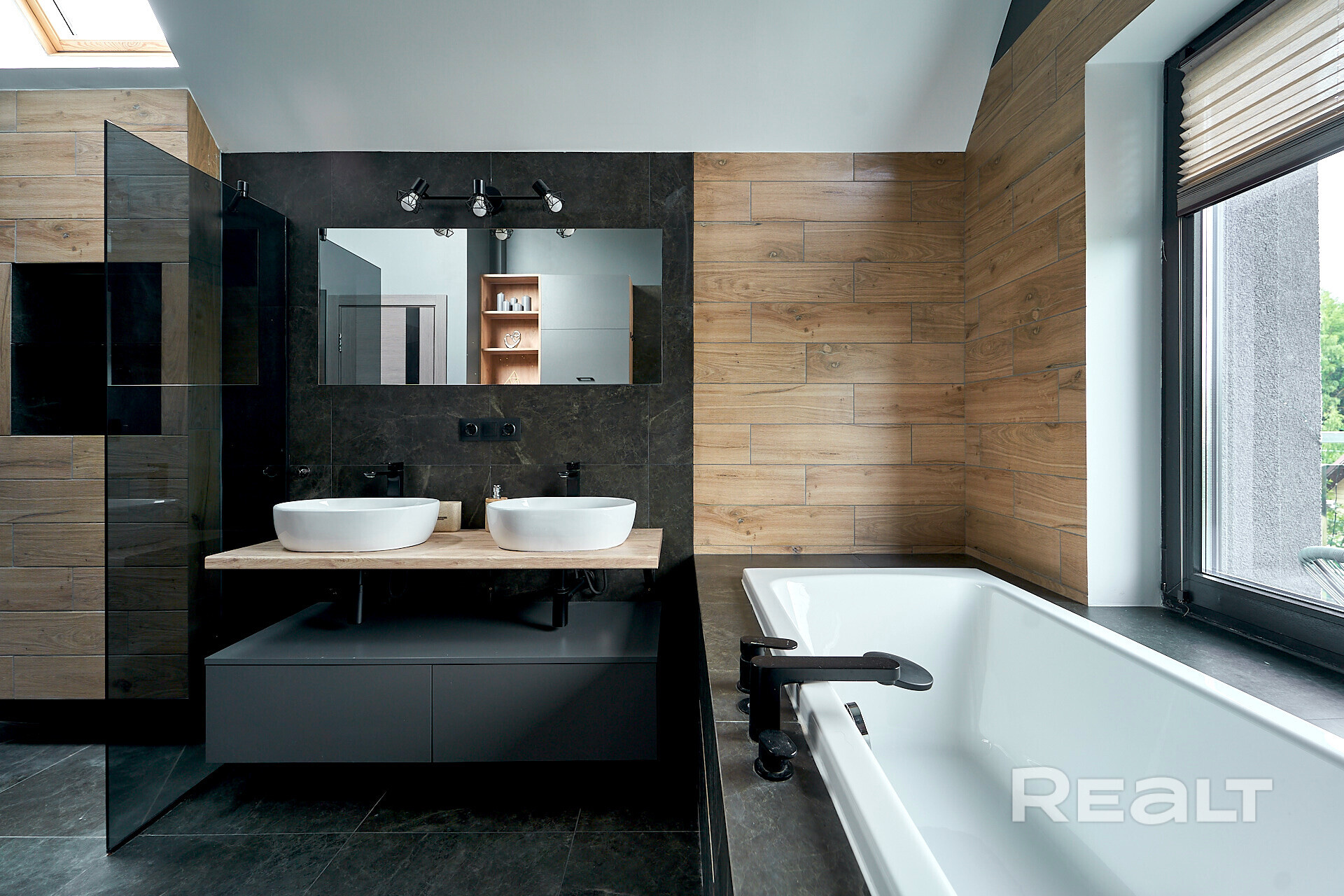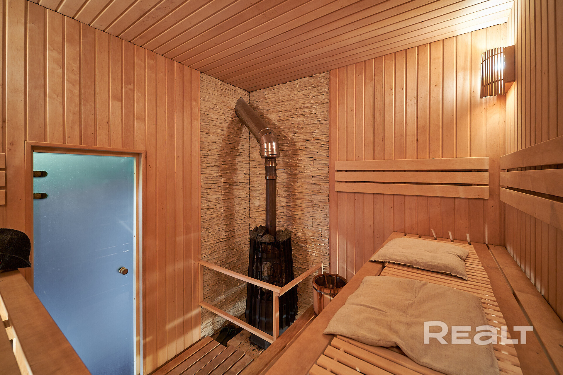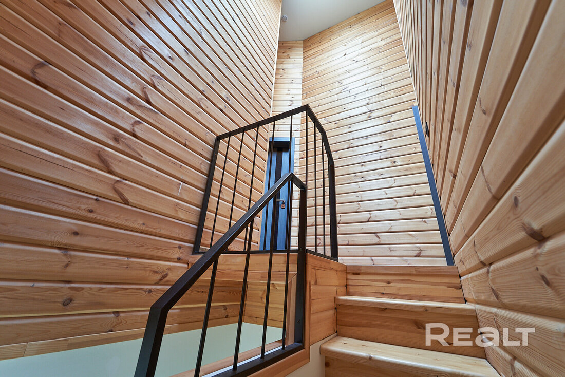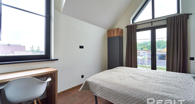 В Логойском районе продается современный двухэтажный дом. Внутри сделан хороший ремонт. Первый этаж занят общими зонами, в том числе и сауной. На втором расположились три спальни с выходом на террасы. Оцените дом почти за 200 тысяч долларов.