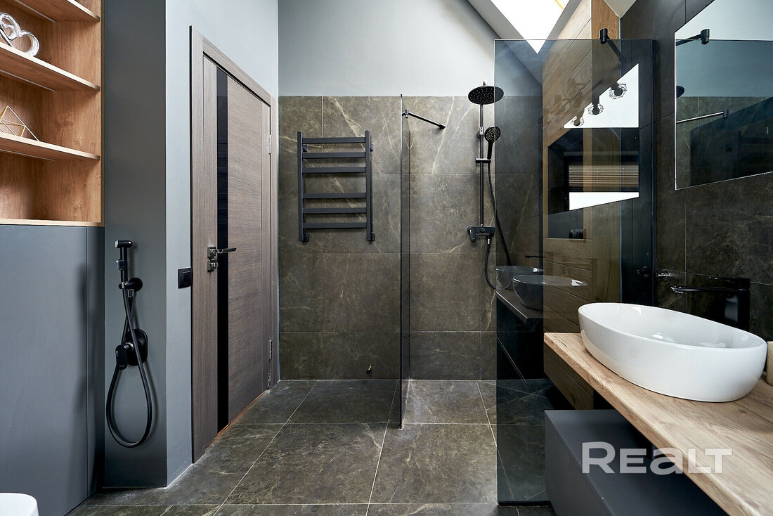 На этом же этаже сделан совмещенный санузел с ванной и душем.