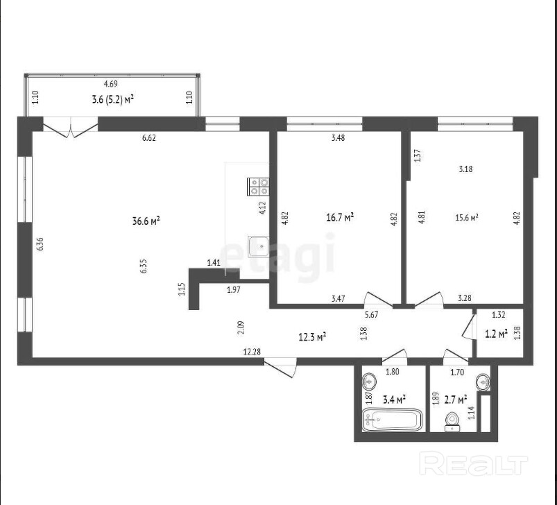 Продается такая евротрешка за 269 тысяч долларов (выходит, что метр посчитали по 2902 доллара).