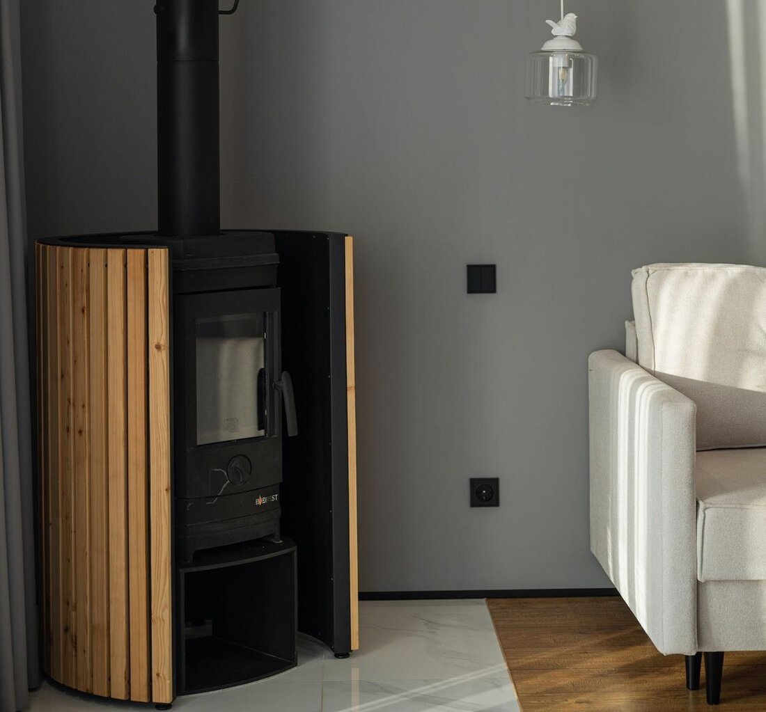 Отопление для дома в деревне выбрали оптимальное — электрическое. Это позволяет поддерживать минимальную температуру в автономном режиме — можно спокойно уезжать в город и не переживать, что в доме что-то замерзнет или отсыреет.