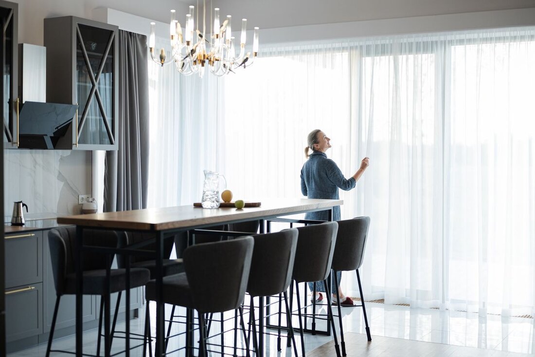 Она рассказывает, что их поиск превратился в отдельную миссию: большинство компаний предлагали конструкции с перемычками, которые ей не нравятся от слова совсем. И дело не в том, что ее вкусы не совпадают со вкусами оконщиков. Оказывается, в технологическом плане не так то и просто сделать большое окно в пол с цельным стеклопакетом и чтобы оно открывалась и закрывалось, не теряя свою геометрию. В итоге нашлась в Минске фирма (IDV Sale), которая смогла реализовать высокие двери-окна без лишних элементов, легко открывающиеся как обычная дверь.