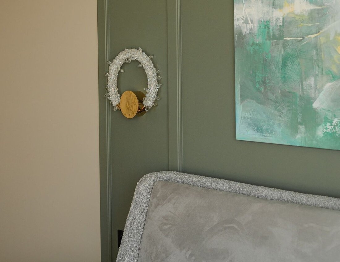 Интерьер современный европейский, с классическими чертами и элементами загородного уюта. По словам Ники Воробей, на главных ролях в нем натуральные материалы, приглушённые пудровые оттенки, золотая и черная фурнитура.