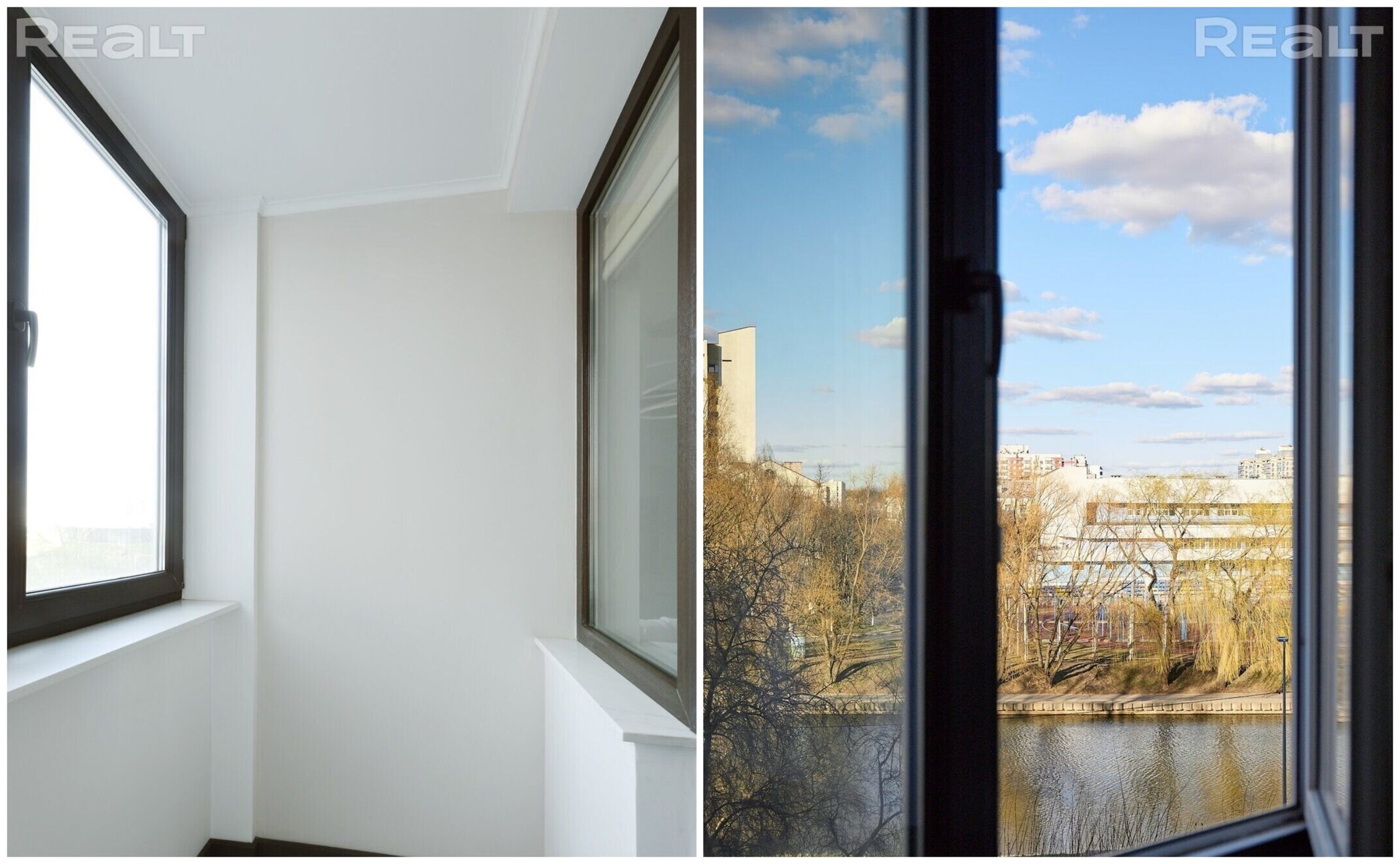 Окна евродвушки выходят на парк и Свислочь. Достанется покупателю и парковочное место.