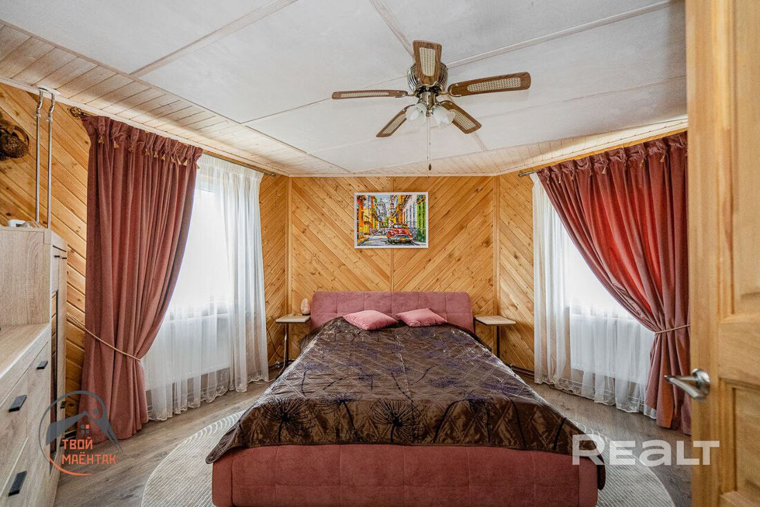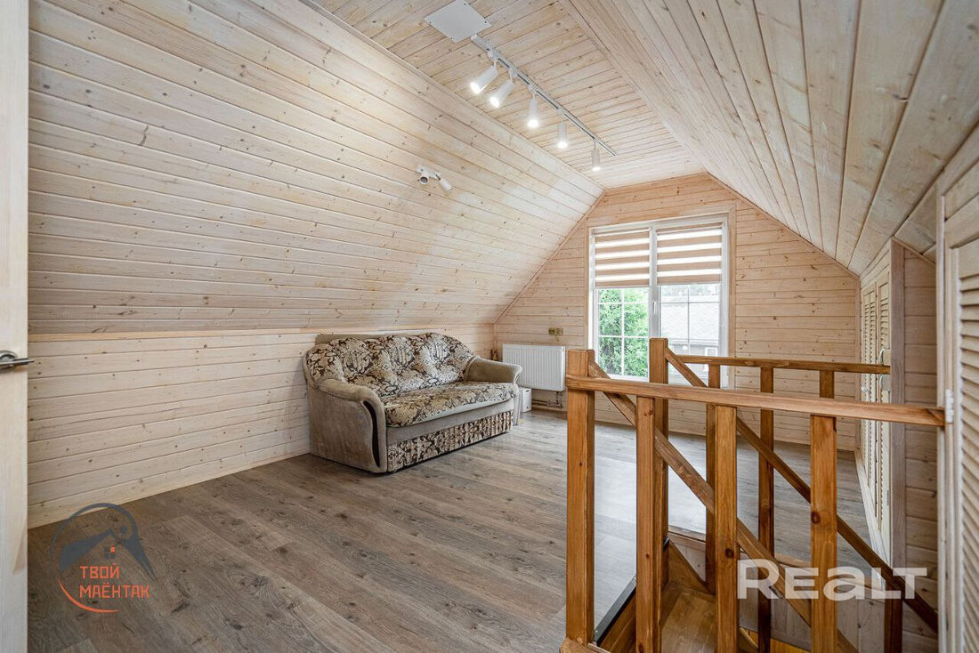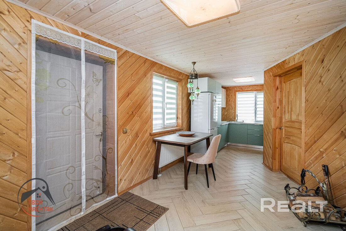 Дом состоит из кухни-гостиной и нескольких жилых комнат. Затевать ремонт и перевозить мебель новым жильцам не придется. Все комнаты уже уютно обставлены и декорированы. Отделка дома выполнена в классическом стиле с большим использованием дерева.