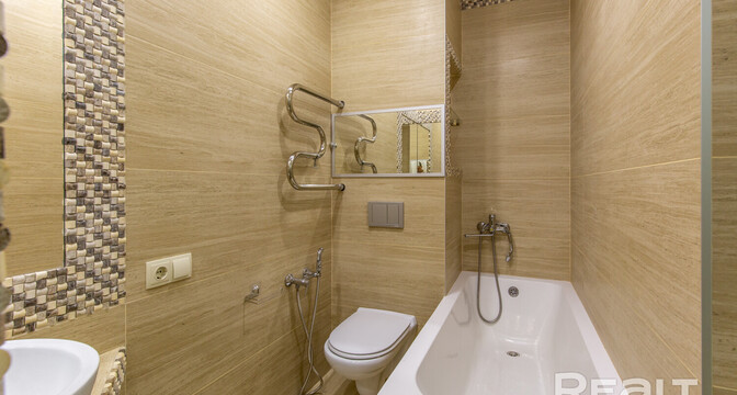 Начинаем с отноительно бюджетного варианта — студия в Минск-Мире. Дом «Марина-2» в квартале «Эмиратс». Это совсем рядом с метро «Аэродромная», а соответственно и с ТРЦ «Авиамолл». Адрес — Братская, 6. Дом 2018 года постройки, в нем 19 этажей.