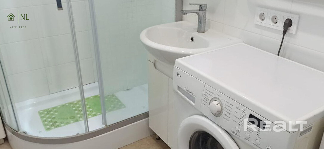 Общая площадь — 30 квадратов. Высота потолков — 2,7 метра. На полу лежит ламинат и плитка. Санузел совмещенный, установлена душевая и подключена стиральная машина. Есть застекленная лоджия.